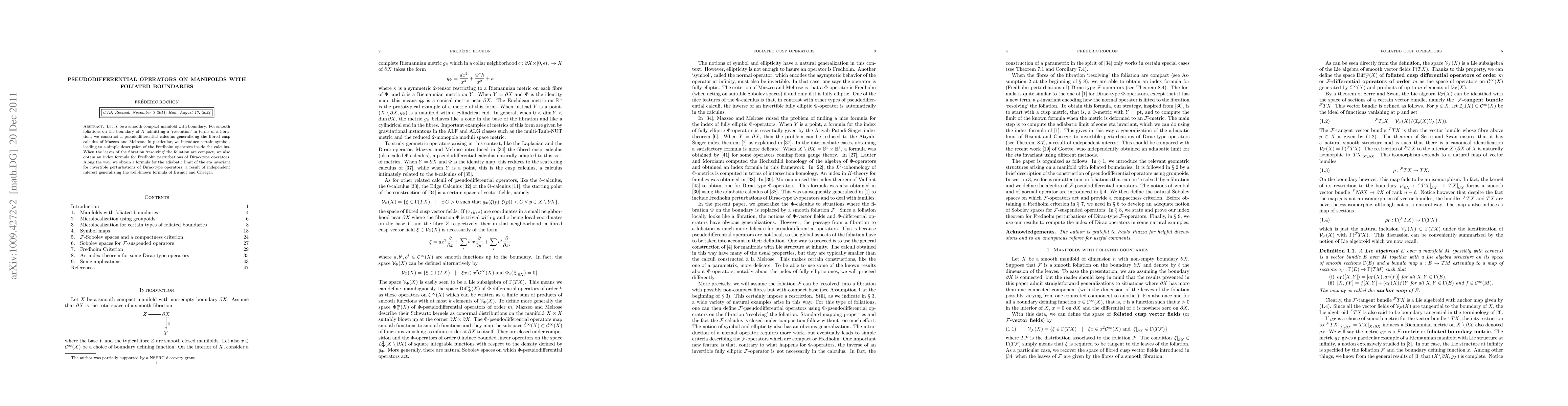 This paper constructs a pseudodifferential operator calculus on manifolds with foliated boundaries, generalizing the fibred cusp calculus. It introduces new symbols for Fredholm operators and provides an index formula for Dirac-type operators, along with a generalized adiabatic limit formula for the eta invariant.