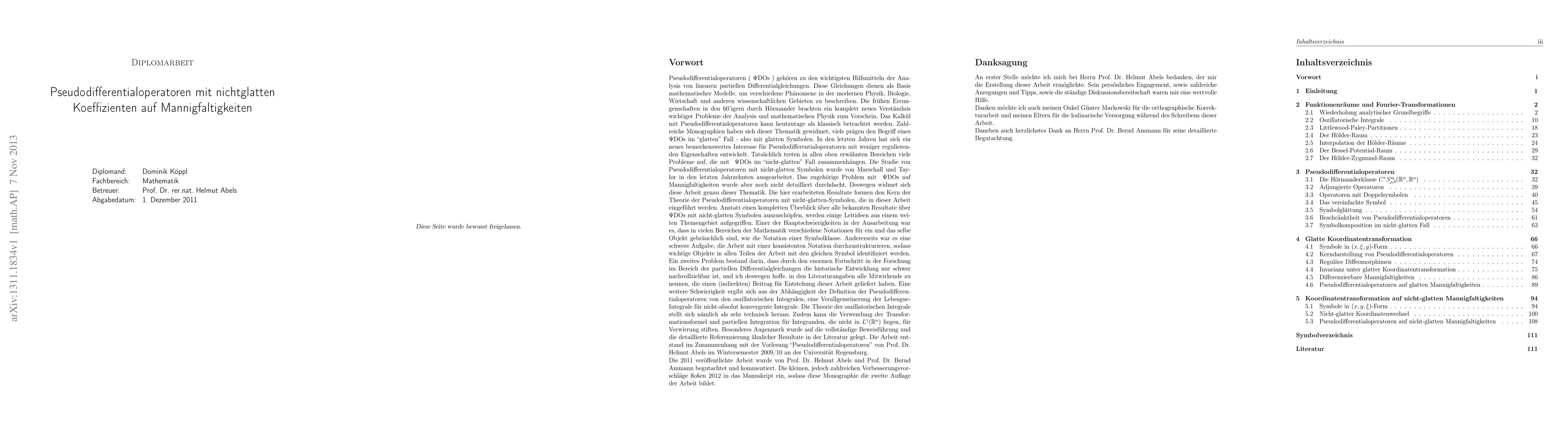 A generalization of differential operators are pseudodifferential operators which are used for reasoning about partial differential equations with variable coefficients. A lot of useful properties about classical pseudodifferential operators are already discovered by the works of H. Kumano-Go and L. H\"ormander. In this work, we like to transfer their ideas on those operators which symbols are merely H\"older-continous. We focus on the composition of operators, symbol smoothing and operators on manifolds.
