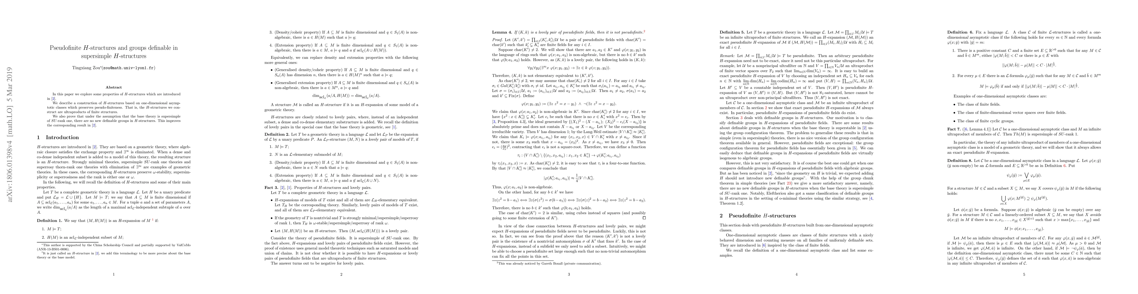 Researchers construct H-structures from finite structures using ultraproducts, preserving pseudo-finiteness, and prove that new definable groups are absent under certain conditions.