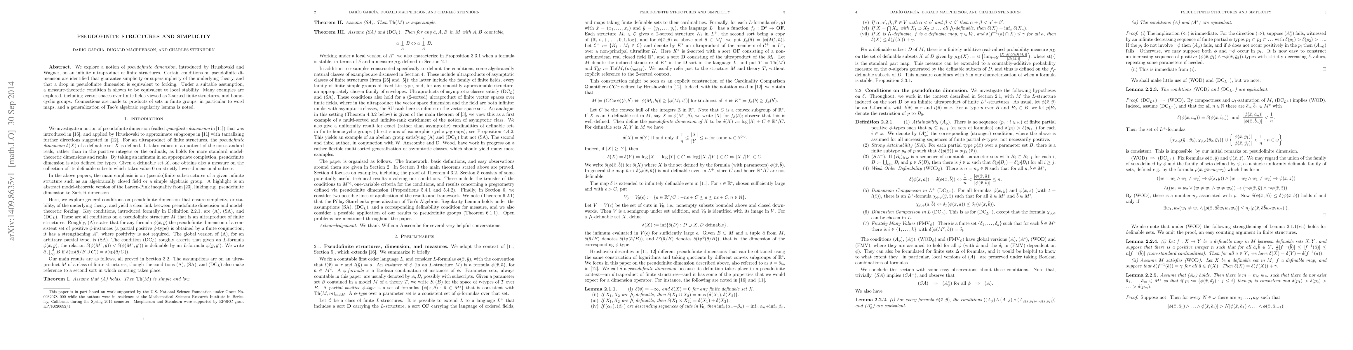 This paper investigates pseudofinite dimension in infinite ultraproducts of finite structures, identifying conditions for simplicity or supersimplicity and establishing equivalences between dimension drops and forking. It also connects measure-theoretic conditions to local stability and explores examples like vector spaces and homocyclic groups.