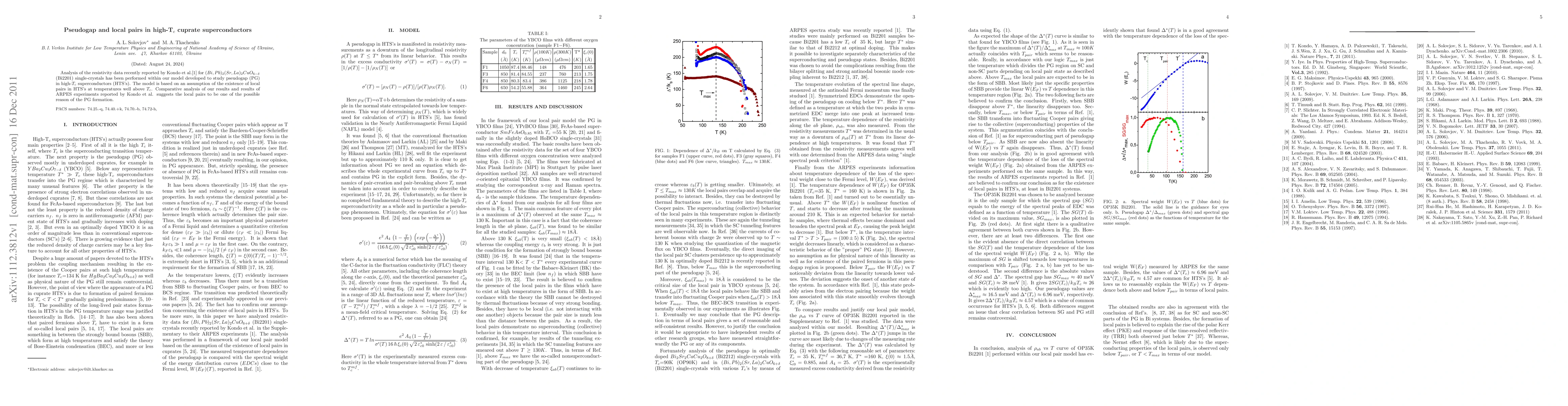 Analysis of the resistivity data recently reported by Kondo et al. [1] for (Bi,Pb)2(Sr,La)2CuO{6-delta} (Bi2201) single-crystals has been performed within our model developed to study pseudogap (PG) in high-Tc superconductors (HTS's). The model is based on an assumption of the existence of local pairs in HTS's at temperatures well above Tc. Comparative analysis of our results and results of ARPES experiments reported by Kondo et al. suggests the local pairs to be one of the possible reason of the PG formation.