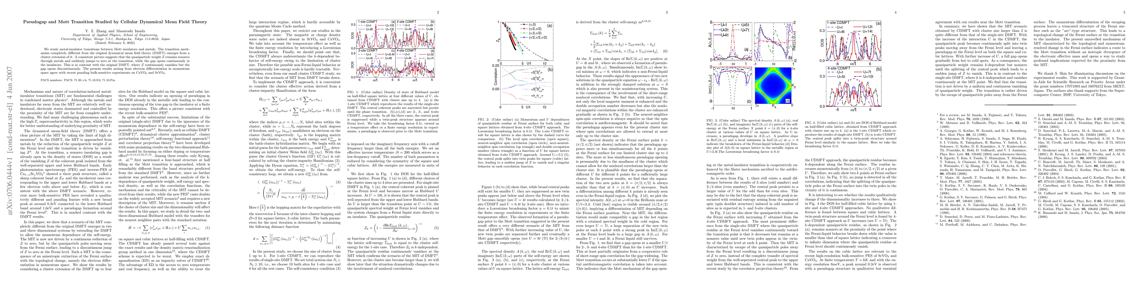 The study employs Cellular Dynamical Mean Field Theory (CDMFT) to investigate metal-insulator transitions between Mott insulators and metals, extending the original dynamical mean field theory (DMFT) by considering a cluster approach.