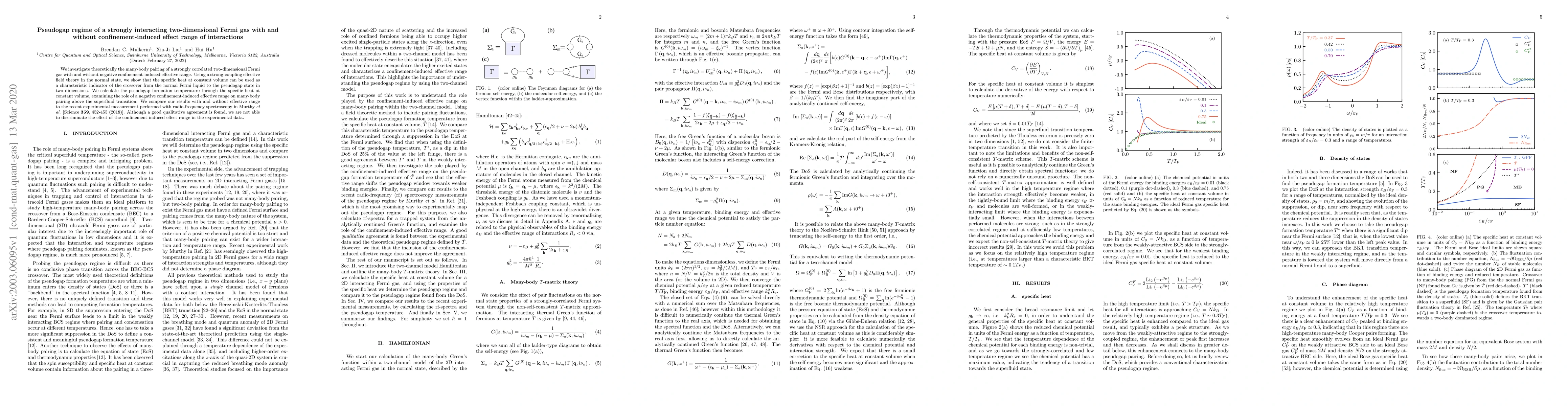 Researchers studied a strongly interacting 2D Fermi gas with and without confinement-induced effects, finding that specific heat can indicate the crossover to pseudogap state. They found good qualitative agreement with experimental data but couldn't discriminate between effects of confinement.
