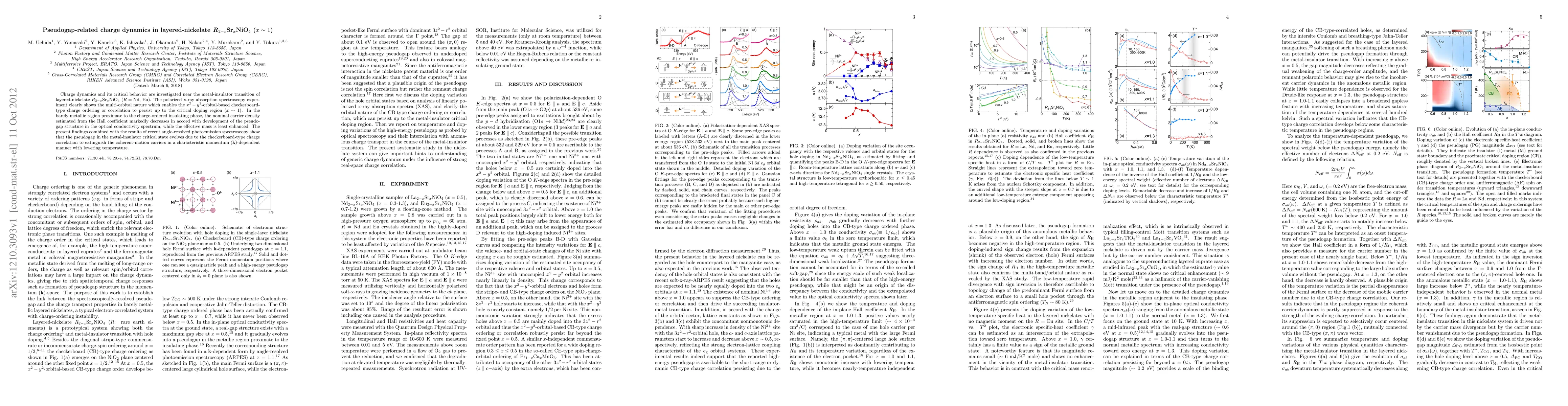 This study investigates charge dynamics in layered-nickelate R2-xSrxNiO4 near the metal-insulator transition, revealing multi-orbital nature and persistent checkerboard-type charge ordering. The pseudogap structure in optical conductivity correlates with decreased carrier density, indicating its evolution due to charge correlations that suppress coherent carriers in a k-dependent manner.