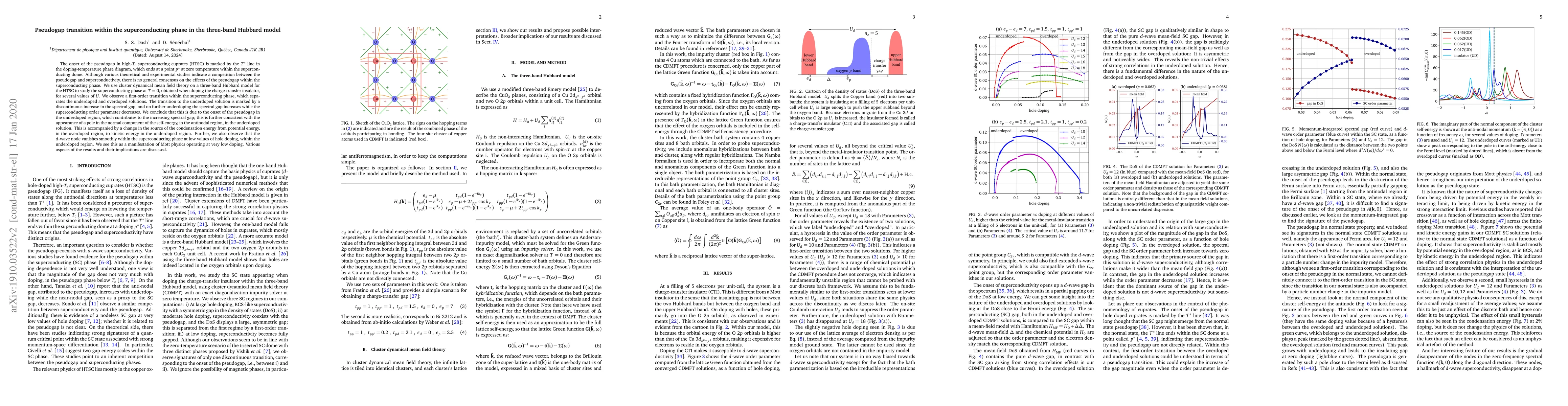 The onset of the pseudogap in high-$T_c$ superconducting cuprates (HTSC) is marked by the $T^*$ line in the doping-temperature phase diagram, which ends at a point $p^*$ at zero temperature within the superconducting dome. Although various theoretical and experimental studies indicate a competition between the pseudogap and superconductivity, there is no general consensus on the effects of the pseudogap within the superconducting phase. We use cluster dynamical mean field theory on a three-band Hubbard model for the HTSC to study the superconducting phase at $T=0$, obtained when doping the charge-transfer insulator, for several values of $U$. We observe a first-order transition within the superconducting phase, which separates the underdoped and overdoped solutions. The transition to the underdoped solution is marked by a discontinuous increase in the spectral gap, and on further underdoping the spectral gap increases while the superconducting order parameter decreases. We conclude that this is due to the onset of the pseudogap in the underdoped region, which contributes to the increasing spectral gap; this is further consistent with the appearance of a pole in the normal component of the self-energy, in the antinodal region, in the underdoped solution. This is accompanied by a change in the source of the condensation energy from potential energy, in the overdoped region, to kinetic energy in the underdoped region. Further, we also observe that the $d$-wave node vanishes smoothly within the superconducting phase at low values of hole doping, within the underdoped region. We see this as a manifestation of Mott physics operating at very low doping. Various aspects of the results and their implications are discussed.
