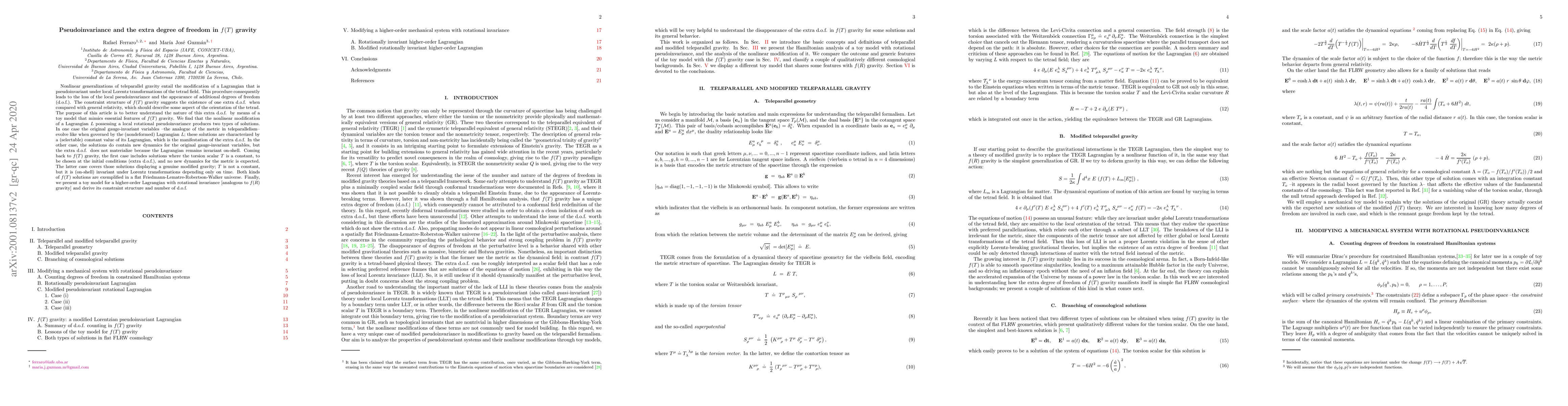 Nonlinear generalizations of teleparallel gravity entail the modification of a Lagrangian that is pseudoinvariant under local Lorentz transformations of the tetrad field. This procedure consequently leads to the loss of the local pseudoinvariance and the appearance of additional degrees of freedom (d.o.f.). The constraint structure of f(T) gravity suggests the existence of one extra d.o.f. when compared with GR, which should describe some aspect of the orientation of the tetrad. The purpose of this article is to better understand the nature of this extra d.o.f. by means of a toy model that mimics essential features of f(T) gravity. We find that the nonlinear modification of a Lagrangian L possessing a local rotational pseudoinvariance produces two types of solutions. In one case the original gauge-invariant variables -- the analogue of the metric in teleparallelism -- evolve like when governed by the (nondeformed) Lagrangian L; these solutions are characterized by a (selectable) constant value of its Lagrangian, which is the manifestation of the extra d.o.f. In the other case, the solutions do contain new dynamics for the original gauge-invariant variables, but the extra d.o.f. does not materialize because the Lagrangian remains invariant on-shell. Coming back to f(T) gravity, the first case includes solutions where the torsion scalar T is a constant, to be chosen at the initial conditions (extra d.o.f.), and no new dynamics for the metric is expected. The latter case covers those solutions displaying a genuine modified gravity; T is not a constant, but it is (on-shell) invariant under Lorentz transformations depending only on time. Both kinds of f(T) solutions are exemplified in a flat FLRW universe. Finally, we present a toy model for a higher-order Lagrangian with rotational invariance [analogous to f(R) gravity] and derive its constraint structure and number of d.o.f.