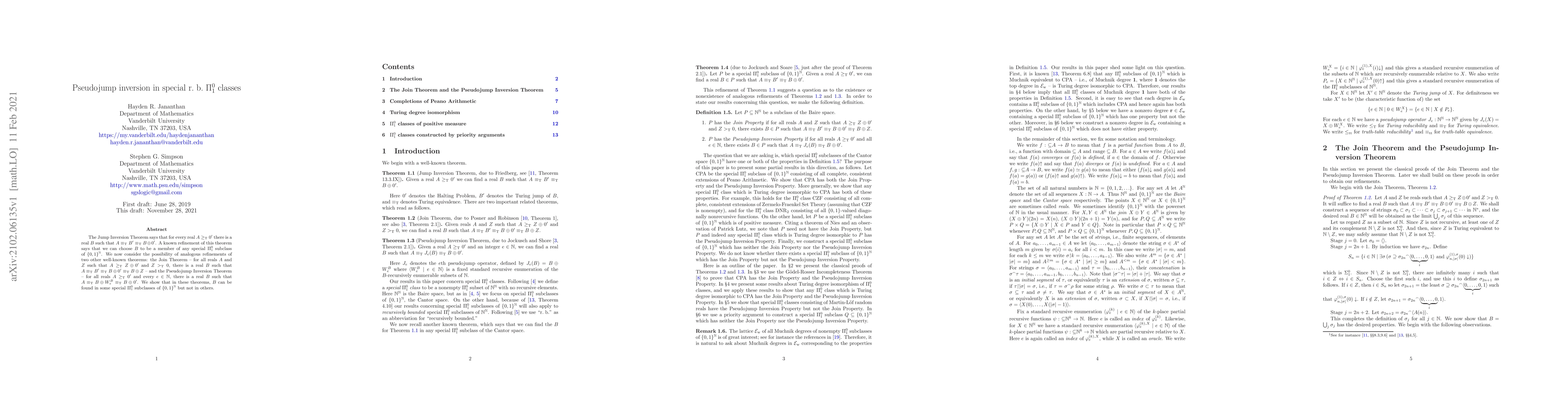 This paper explores refinements of the Jump Inversion Theorem, Join Theorem, and Pseudojump Inversion Theorem, demonstrating that while $B$ can be chosen from certain special $\Pi^0_1$ subclasses of $\{0,1\}^\omega$, it cannot be chosen from others. The results highlight the nuanced behavior of these theorems within different subclasses.