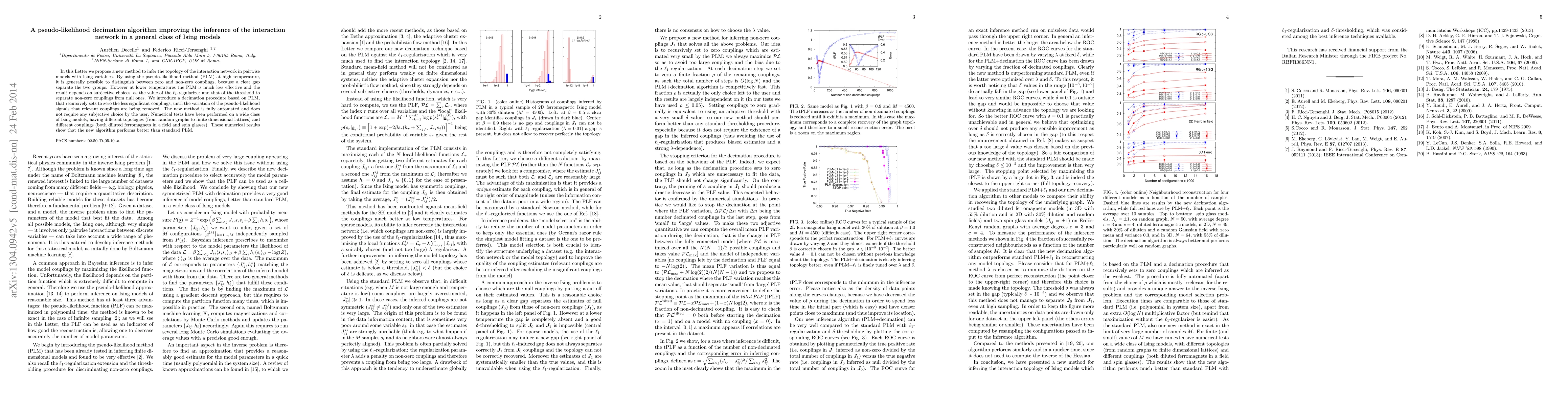 In this Letter we propose a new method to infer the topology of the interaction network in pairwise models with Ising variables. By using the pseudolikelihood method (PLM) at high temperature, it is generally possible to distinguish between zero and nonzero couplings because a clear gap separate the two groups. However at lower temperatures the PLM is much less effective and the result depends on subjective choices, such as the value of the $\ell_1$ regularizer and that of the threshold to separate nonzero couplings from null ones. We introduce a decimation procedure based on the PLM that recursively sets to zero the less significant couplings, until the variation of the pseudolikelihood signals that relevant couplings are being removed. The new method is fully automated and does not require any subjective choice by the user. Numerical tests have been performed on a wide class of Ising models, having different topologies (from random graphs to finite dimensional lattices) and different couplings (both diluted ferromagnets in a field and spin glasses). These numerical results show that the new algorithm performs better than standard PLM