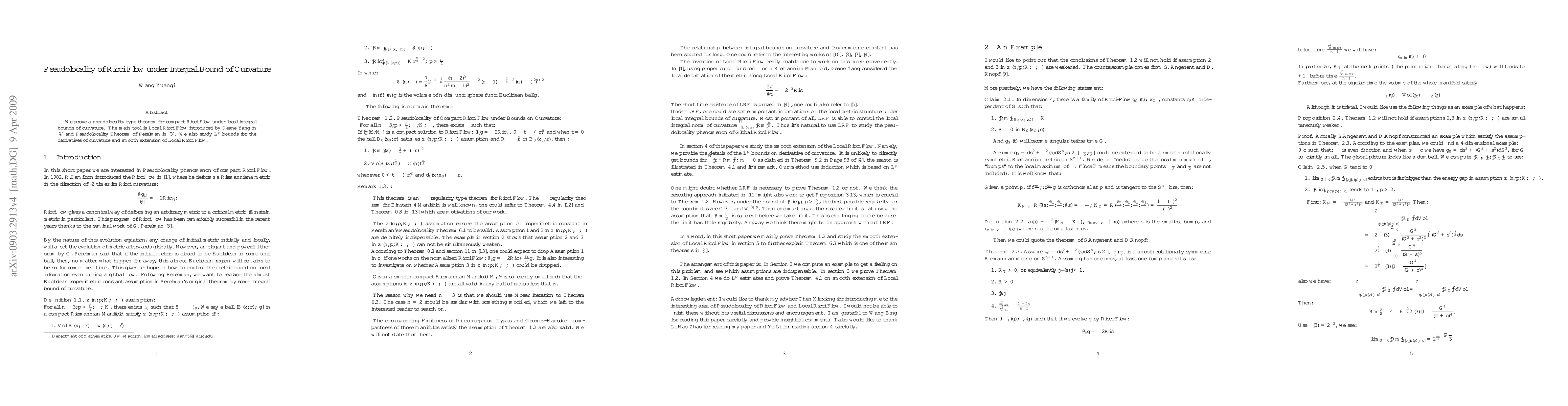 The paper uses Local Ricci Flow and Pseudolocality Theorem of Perelman to prove a pseudolocality type theorem for compact Ricci Flow under local integral bounds of curvature.