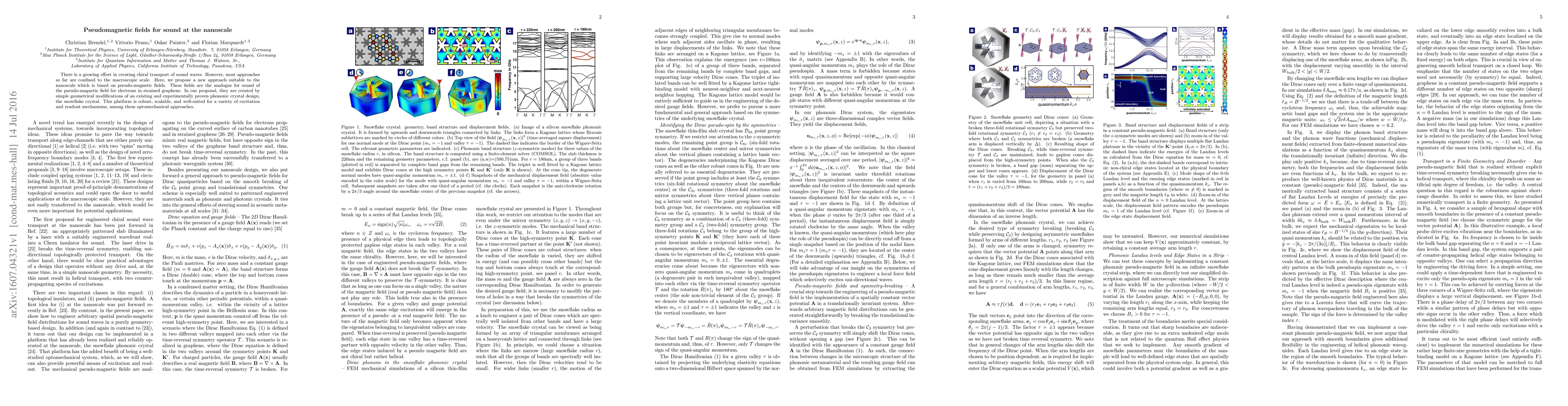 This paper proposes a nanoscale method for chiral transport of sound waves using pseudomagnetic fields, analogous to those used in strained graphene for electrons. The approach involves modifying a phononic crystal design, specifically the snowflake crystal, to create these fields, offering a scalable and robust platform for various excitation and readout mechanisms.