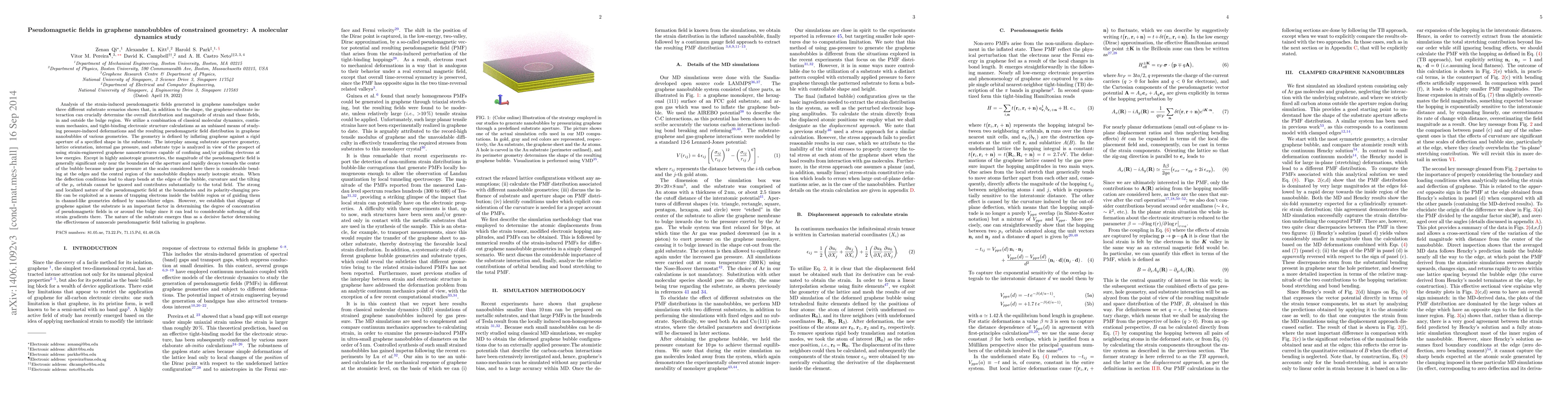 This study investigates the pseudomagnetic fields generated in graphene nanobubbles under different substrate conditions using molecular dynamics, continuum mechanics, and electronic structure calculations. The research finds that the substrate's geometry and interaction significantly influence the distribution and magnitude of these fields, which are strongest near the bubble boundaries and decay towards the center due to bending effects. The study highlights the potential for strain-engineered graphene to confine or guide electrons, but notes that slippage between graphene and the substrate can weaken these effects.