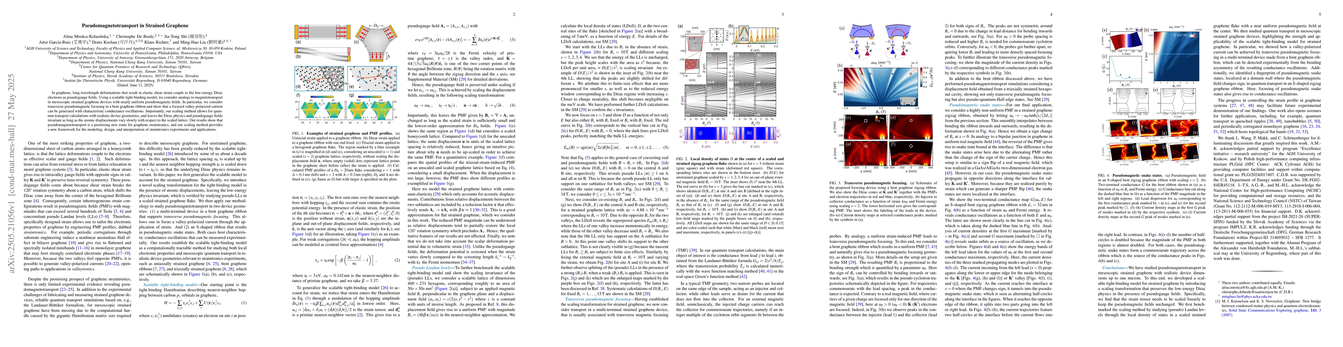 The paper presents a scalable tight-binding model for studying pseudomagnetotransport in strained graphene and introduces a novel scaling method for quantum transport calculations in realistic device geometries.