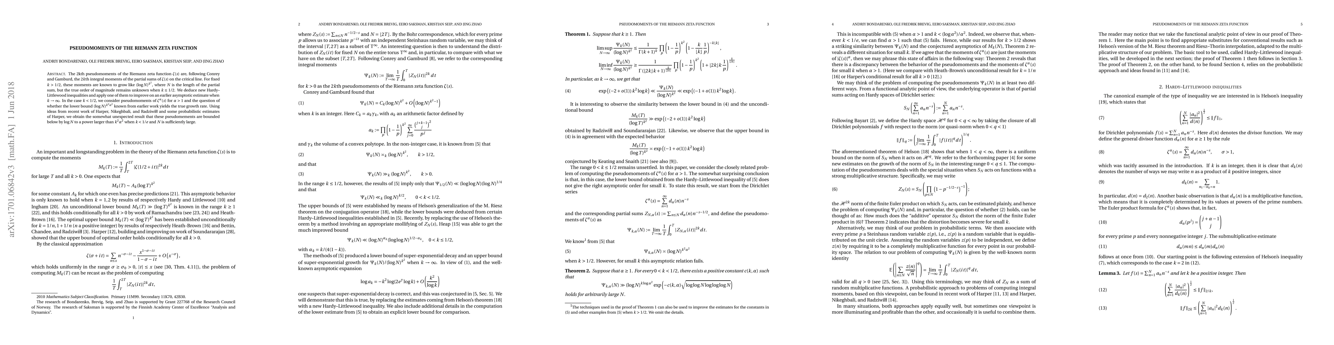 Researchers investigate pseudomoments of the Riemann zeta function, exploring growth rates for partial sums on the critical line when k is less than 1/2, and finding that these moments are bounded below by log N to a power larger than k^2eta^2.