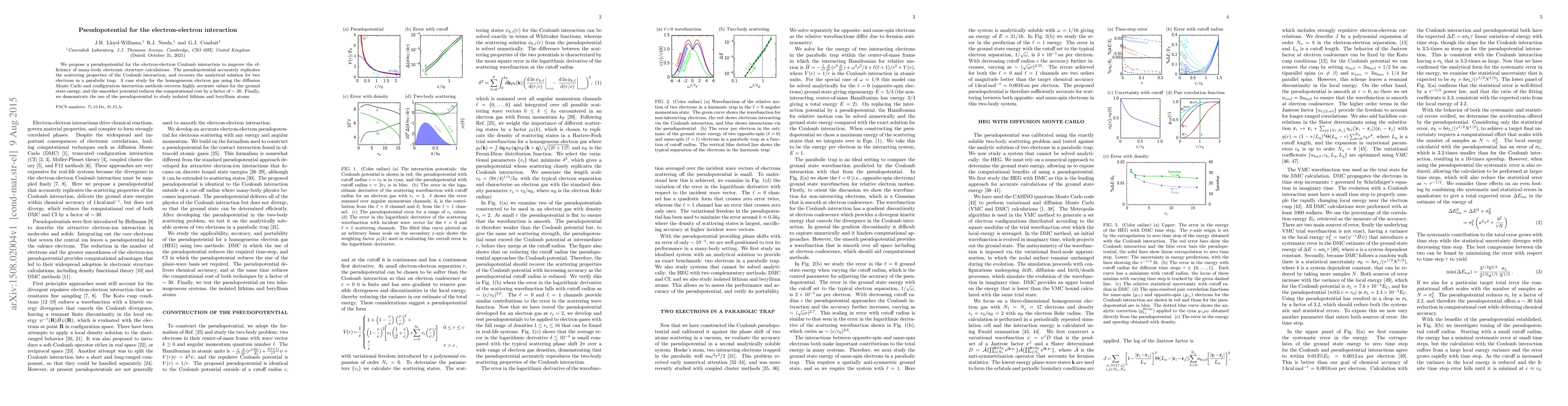 We propose a pseudopotential for the electron-electron Coulomb interaction to improve the efficiency of many-body electronic structure calculations. The pseudopotential accurately replicates the scattering properties of the Coulomb interaction, and recovers the analytical solution for two electrons in a parabolic trap. A case study for the homogeneous electron gas using the diffusion Monte Carlo and configuration interaction methods recovers highly accurate values for the ground state energy, and the smoother potential reduces the computational cost by a factor of ~30. Finally, we demonstrate the use of the pseudopotential to study isolated lithium and beryllium atoms.
