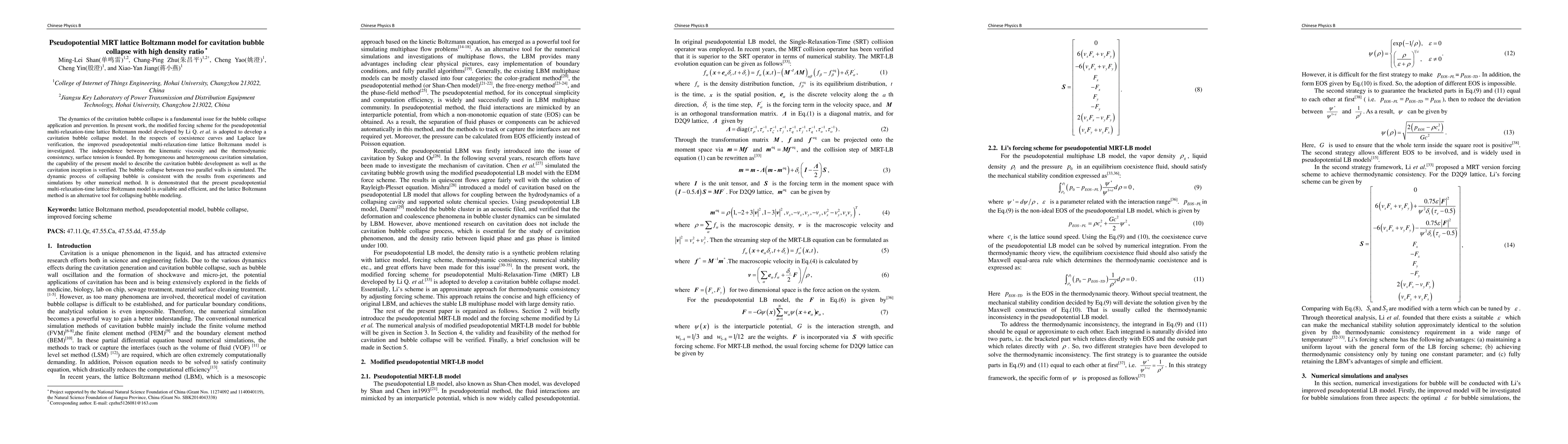 This paper develops a pseudopotential multi-relaxation-time lattice Boltzmann model to simulate cavitation bubble collapse dynamics, demonstrating its effectiveness through simulations of homogeneous and heterogeneous cavitation and bubble collapse between parallel walls. The model shows consistency with experimental and numerical results.