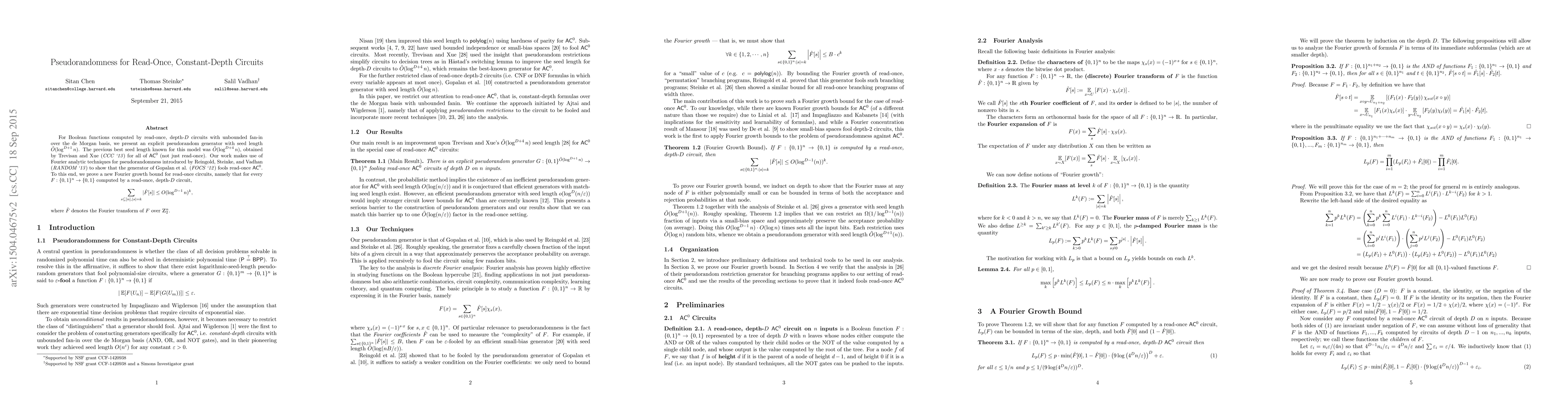 The paper introduces a novel Fourier growth bound for read-once circuits and leverages it to construct an improved pseudorandom generator.