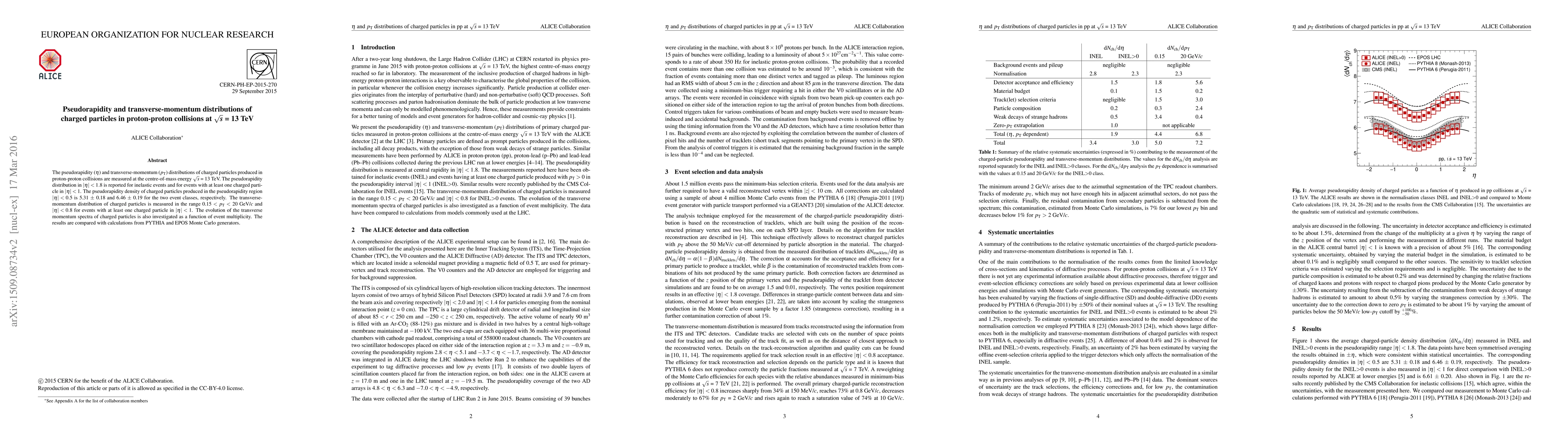 This study measures the pseudorapidity and transverse-momentum distributions of charged particles in proton-proton collisions at 13 TeV, reporting a pseudorapidity density of 5.31 $\pm$ 0.18 and 6.46 $\pm$ 0.19 for different event classes, and compares the findings with PYTHIA and EPOS models. The correlation between transverse momentum and particle multiplicity is also analyzed.
