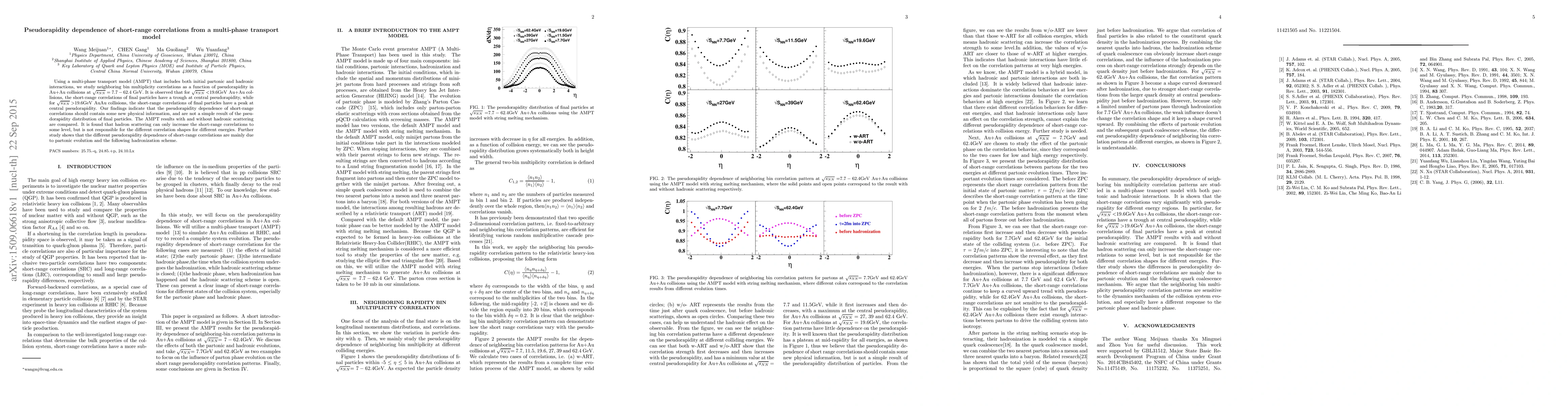 This study using the AMPT model reveals that short-range correlations in Au+Au collisions exhibit a pseudorapidity dependence that changes with collision energy: a trough at central pseudorapidity for lower energies and a peak for higher energies, indicating new physical insights beyond simple particle distribution effects. The role of hadronic scattering is limited, with partonic evolution and hadronization being the primary factors influencing these correlation shapes.