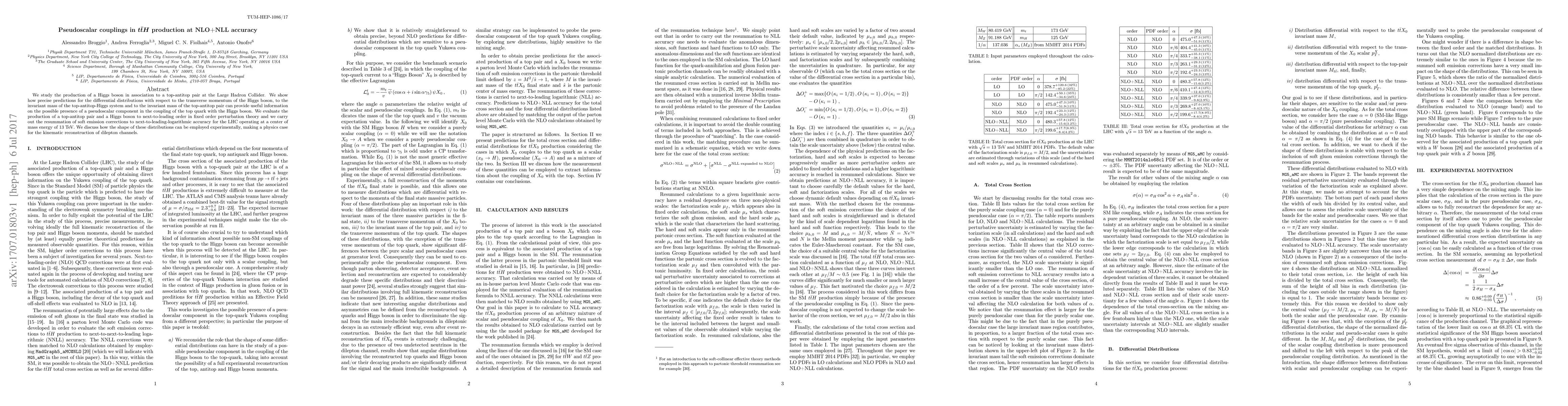 This paper investigates the production of a Higgs boson in association with a top-antitop pair at the LHC, focusing on pseudoscalar couplings in the top-Higgs interaction. It provides precise predictions for differential distributions and discusses their potential to reveal pseudoscalar components, employing NLO+NLL accuracy for the analysis.