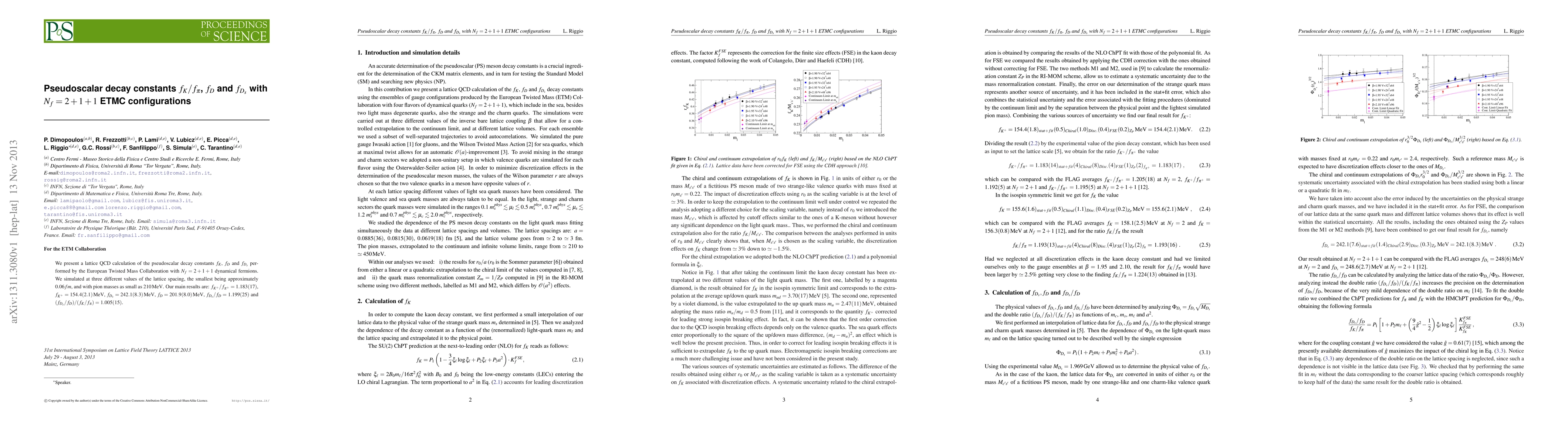 This paper reports lattice QCD calculations of pseudoscalar decay constants $f_K$, $f_D$, and $f_{D_s}$ using $N_f = 2 + 1 + 1$ dynamical fermions by the European Twisted Mass Collaboration. Key results include $f_{K^+}/f_{\pi^+}=1.183(17)$ and $f_{D_s}/f_D=1.199(25)$.