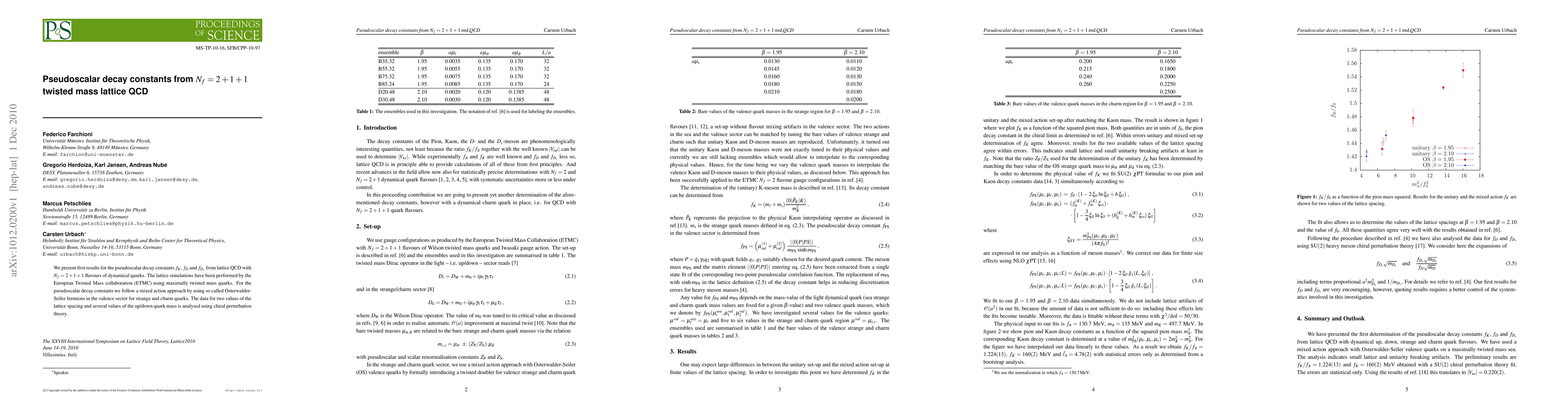This paper reports initial findings on pseudoscalar decay constants $f_K$, $f_D$, and $f_{D_s}$ from lattice QCD simulations with N_f=2+1+1 dynamical quark flavors by the ETMC collaboration. The study employs a mixed action approach with twisted mass fermions and analyzes data using chiral perturbation theory.