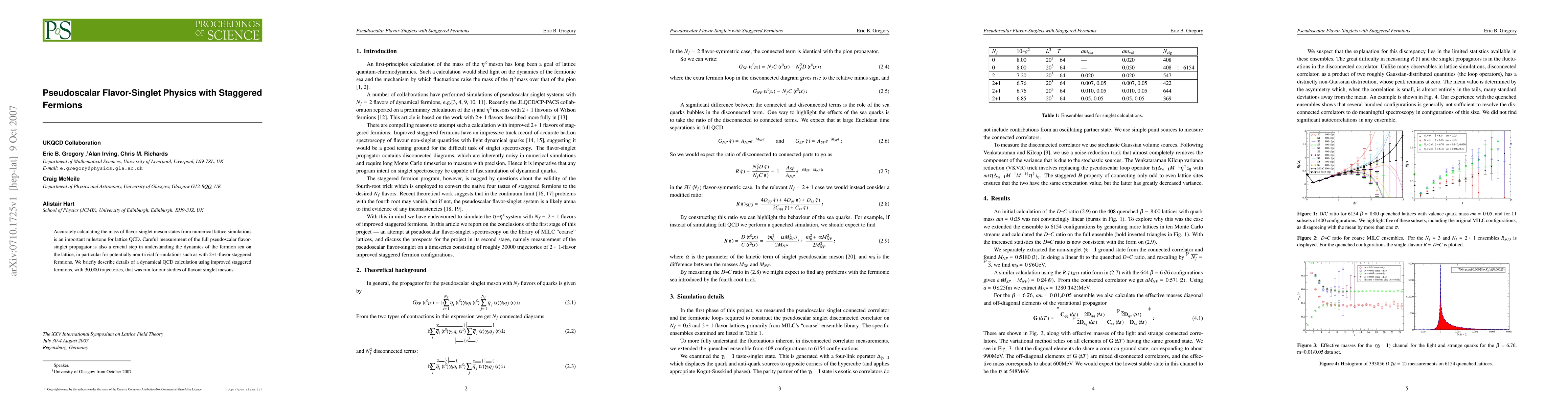 Accurately calculating the mass of flavor-singlet meson states from numerical lattice simulations is an important milestone for lattice QCD. Careful measurement of the full pseudoscalar flavor-singlet propagator is also a crucial step in understanding the dynamics of the fermion sea on the lattice, in particular for potentially non-trivial formulations such as with 2+1-flavor staggered fermions. We briefly describe details of a dynamical QCD calculation using improved staggered fermions, with 30,000 trajectories, that was run for our studies of flavour singlet mesons.