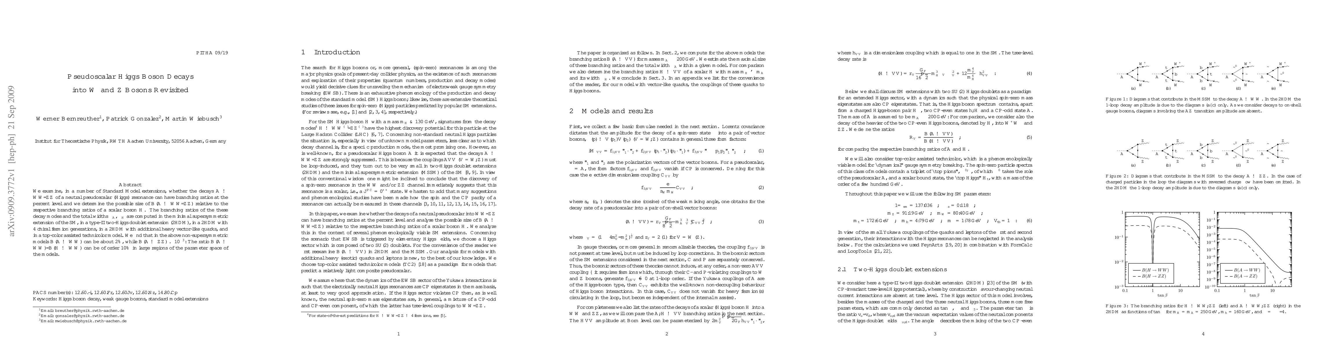 We examine, in a number of Standard Model extensions, whether the decays $A \to WW/ZZ$ of a neutral pseudoscalar (Higgs) resonance can have branching ratios at the percent level and we determine the possible size of $B(A \to WW/ZZ)$ relative to the respective branching ratios of a scalar boson $H$. The branching ratios of the these decay modes and the total widths $\Gamma_A$, $\Gamma_H$ are computed in the minimal supersymmetric extension of the SM, in a type-II two-Higgs doublet extension (2HDM), in a 2HDM with 4 chiral fermion generations, in a 2HDM with additional heavy vector-like quarks, and in a top-color assisted technicolor model. We find that in the above non-supersymmetric models $B(A \to WW)$ can be about 2%, while $B(A \to ZZ) \lesssim 10^{-3}.$ The ratio $B(A \to WW)/B(H \to WW)$ can be of order 10% in large regions of the parameter space of the models.