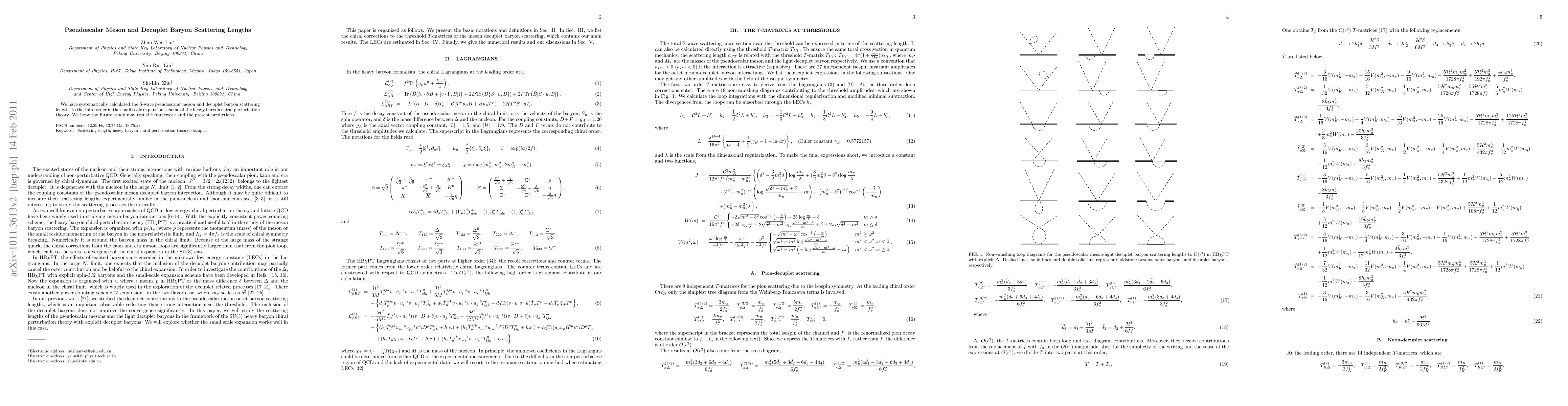 We have systematically calculated the S-wave pseudoscalar meson and decuplet baryon scattering lengths to the third order in the small scale expansion scheme of the heavy baryon chiral perturbation theory. We hope the future study may test the framework and the present predictions.