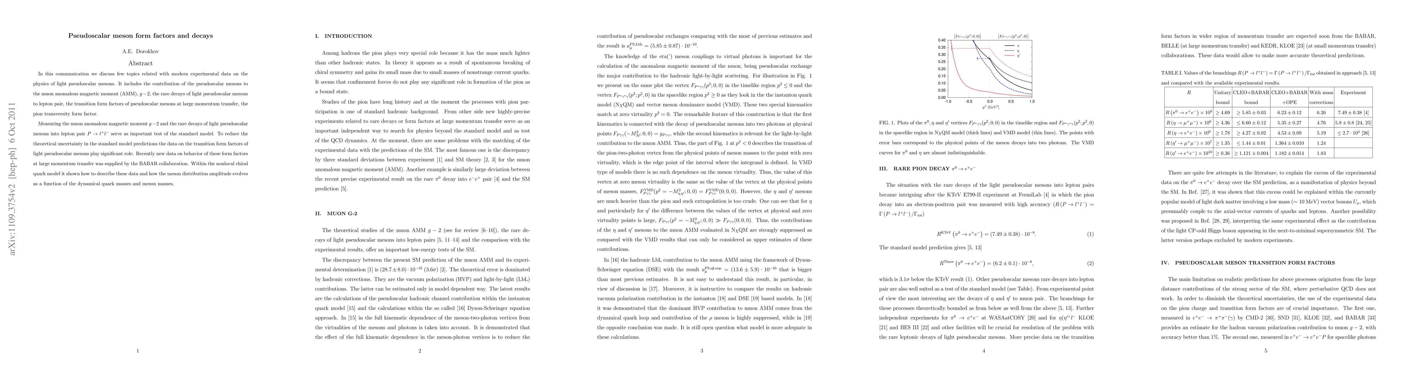 This paper discusses the contributions of light pseudoscalar mesons to the muon anomalous magnetic moment and rare decays into lepton pairs, emphasizing the importance of transition form factors in reducing theoretical uncertainties in the standard model. It also examines new data on pion transversity form factors and their evolution using the nonlocal chiral quark model.
