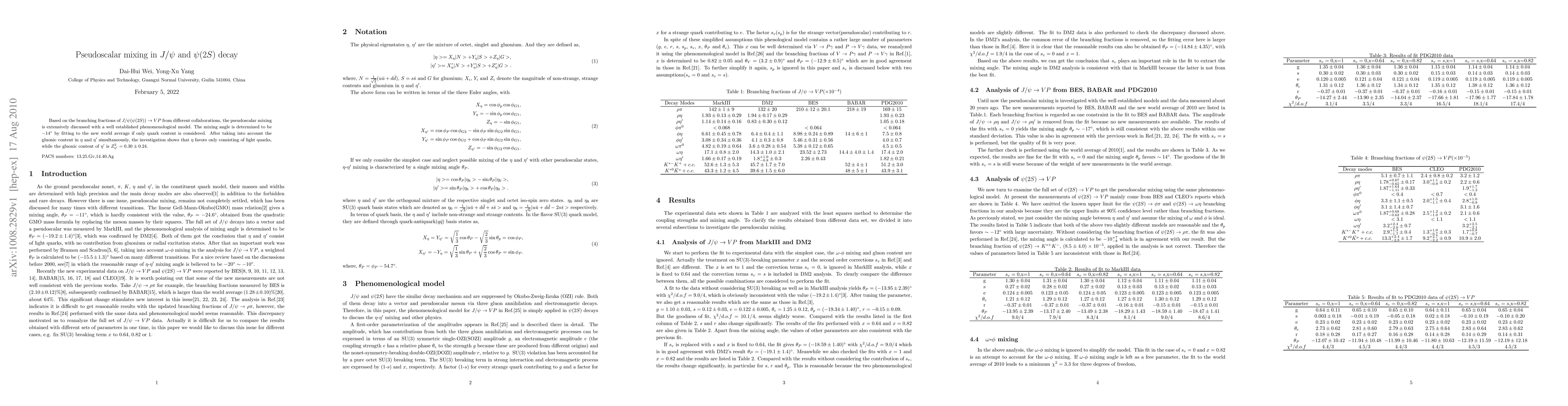 Based on the branching fractions of J/psi(psi(2S))-> VP from different collaborations, the pseudoscalar mixing is extensively discussed with a well established phenomenological model. The mixing angle is determined to be -14 degree by fitting to the new world average if only quark content is considered. After taking into account the gluonic content in eta and eta prime simultaneously, the investigation shows that eta favors only consisting of light quarks, while the gluonic content of eta prime is Z_{eta prime}^2=0.30\pm0.24.
