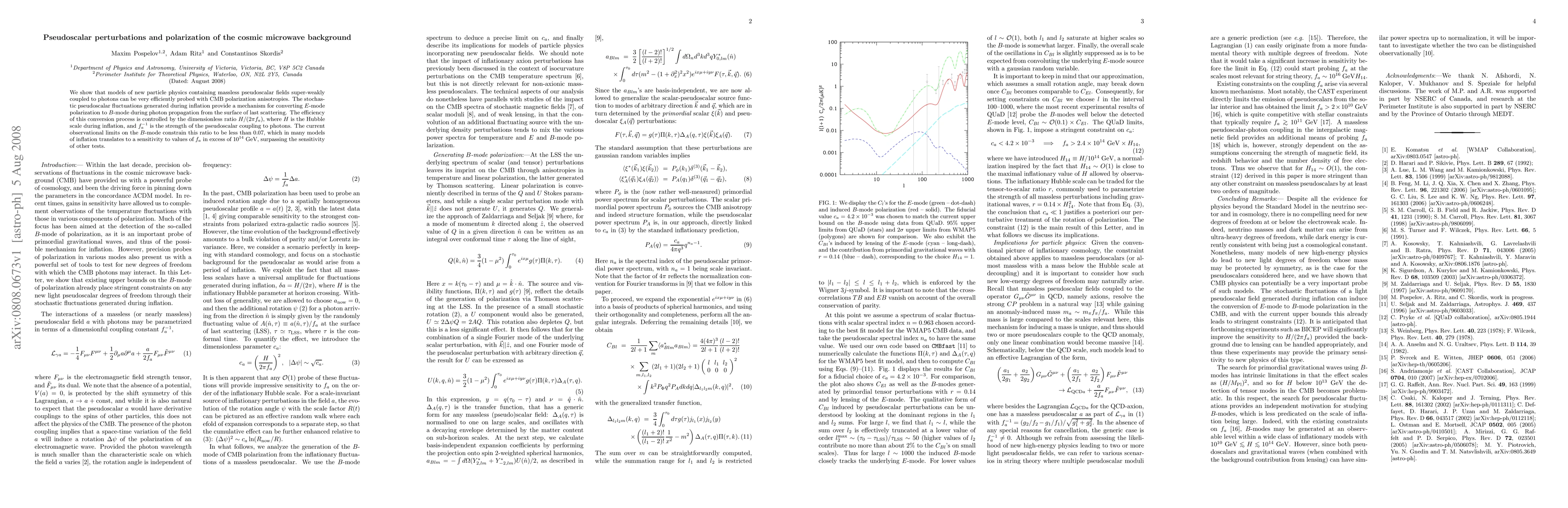 We show that models of new particle physics containing massless pseudoscalar fields super-weakly coupled to photons can be very efficiently probed with CMB polarization anisotropies. The stochastic pseudoscalar fluctuations generated during inflation provide a mechanism for converting E-mode polarization to B-mode during photon propagation from the surface of last scattering. The efficiency of this conversion process is controlled by the dimensionless ratio H/(2\pi f_a), where H is the Hubble scale during inflation, and f_a^{-1} is the strength of the pseudoscalar coupling to photons. The current observational limits on the B-mode constrain this ratio to be less than 0.07, which in many models of inflation translates to a sensitivity to values of f_a in excess of 10^{14} GeV, surpassing the sensitivity of other tests.