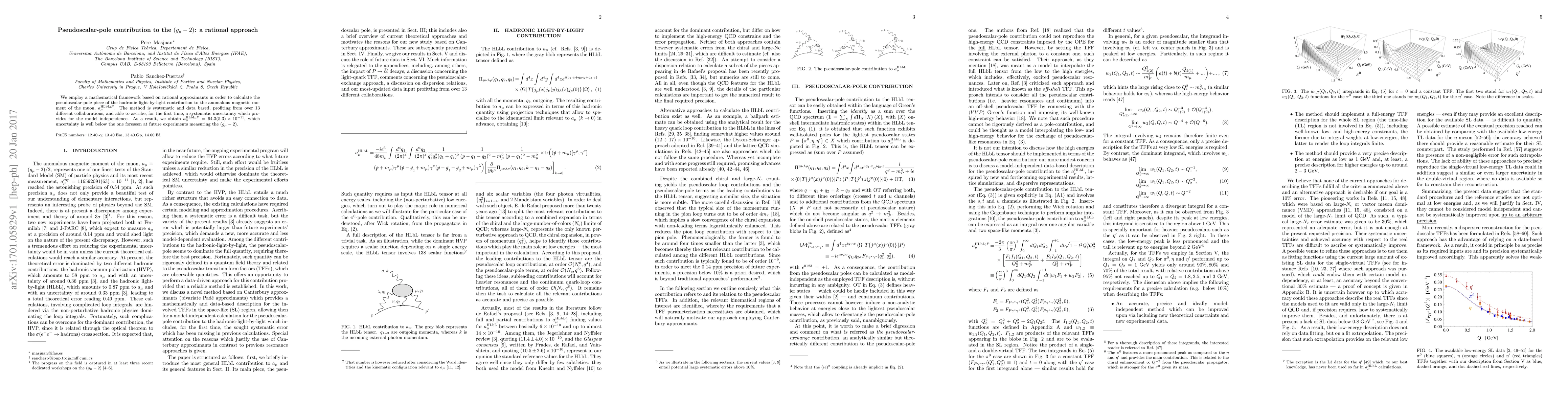 We employ a mathematical framework based on rational approximants in order to calculate the pseudoscalar-pole piece of the hadronic light-by-light contribution to the anomalous magnetic moment of the muon, $a_{\mu}^{\textrm{HLbL};P}$. The method is systematic and data based, profiting from over 13 different collaborations, and able to ascribe, for the first time, a systematic uncertainty which provides for the model independence. As a result, we obtain $a_{\mu}^{\textrm{HLbL};P}=94.3(5.3) \times10^{-11}$, which uncertainty is well below the one foreseen at future experiments measuring the $(g_{\mu}-2)$.