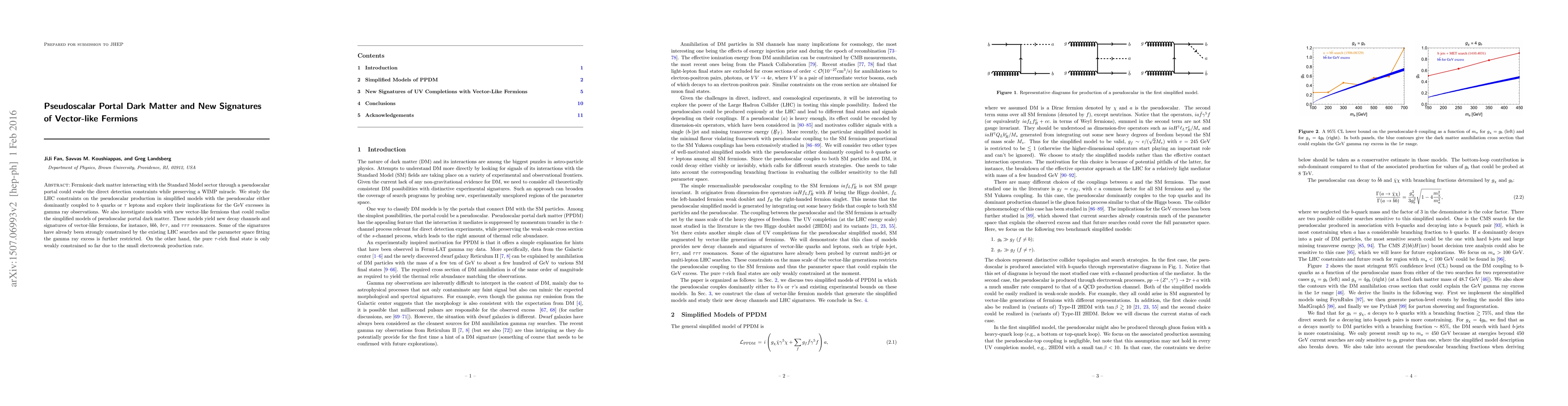 This paper explores fermionic dark matter via a pseudoscalar portal, focusing on its interaction with the Standard Model through b quarks or tau leptons. It examines LHC constraints and new decay channels from vector-like fermions, noting that while some signatures are constrained, tau-rich final states remain weakly constrained.