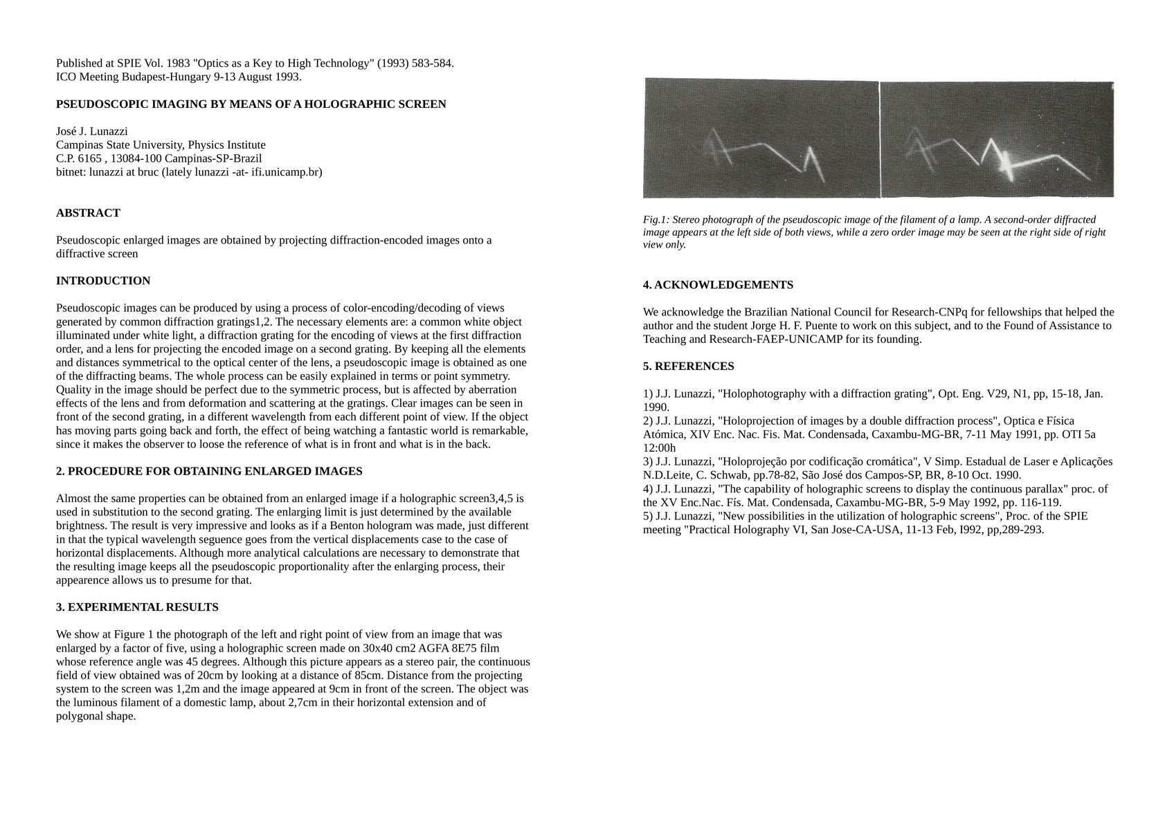 Pseudoscopic enlarged images are obtained by projecting diffraction-encoded images onto a diffractive screen