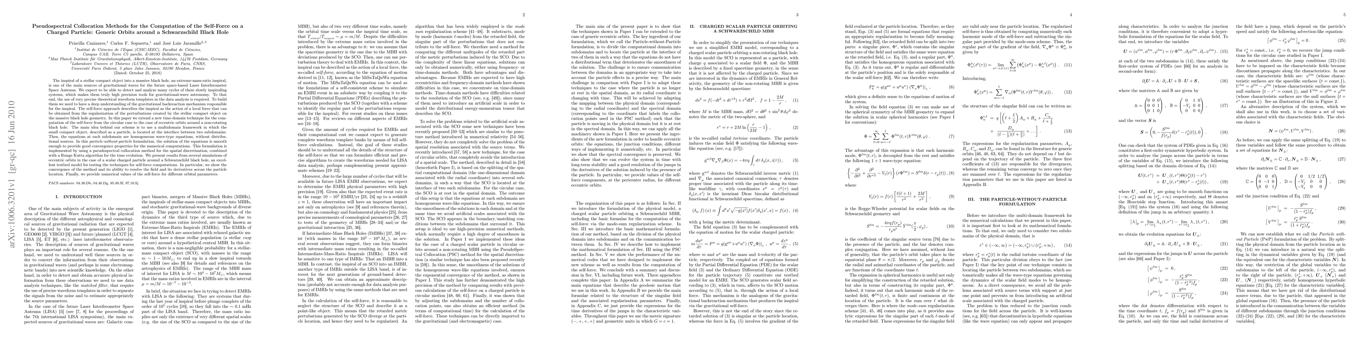 This paper develops a pseudospectral collocation method for computing the self-force on a charged particle in eccentric orbits around a Schwarzschild black hole, extending the technique from circular to more complex orbits. The study demonstrates the method's convergence and ability to accurately resolve the gravitational field and its derivatives, providing valuable data for gravitational wave analysis.