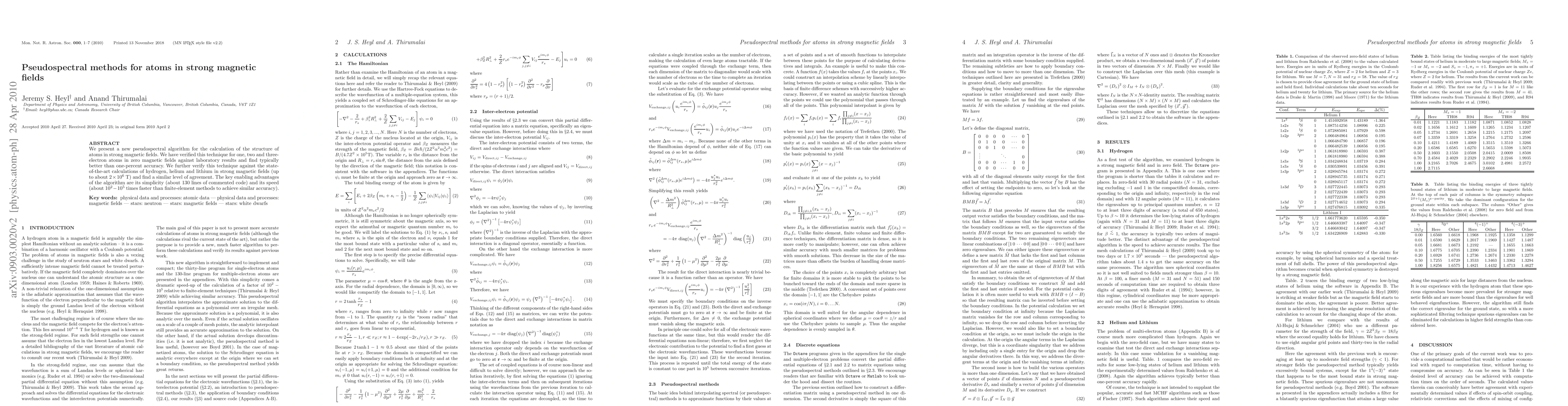 This paper introduces a new pseudospectral algorithm for determining atomic structures under strong magnetic fields, achieving better than one-percent accuracy in zero-field tests and comparable results in strong-field scenarios. The method is notably simple and significantly faster than finite-element methods, with about 130 lines of commented code.
