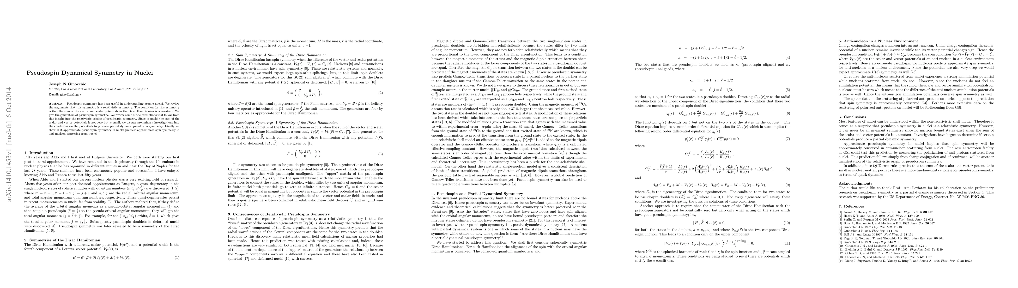 The paper reviews pseudospin symmetry in nuclei, exploring its relativistic origins and implications for spin symmetry in anti-nucleon scattering.