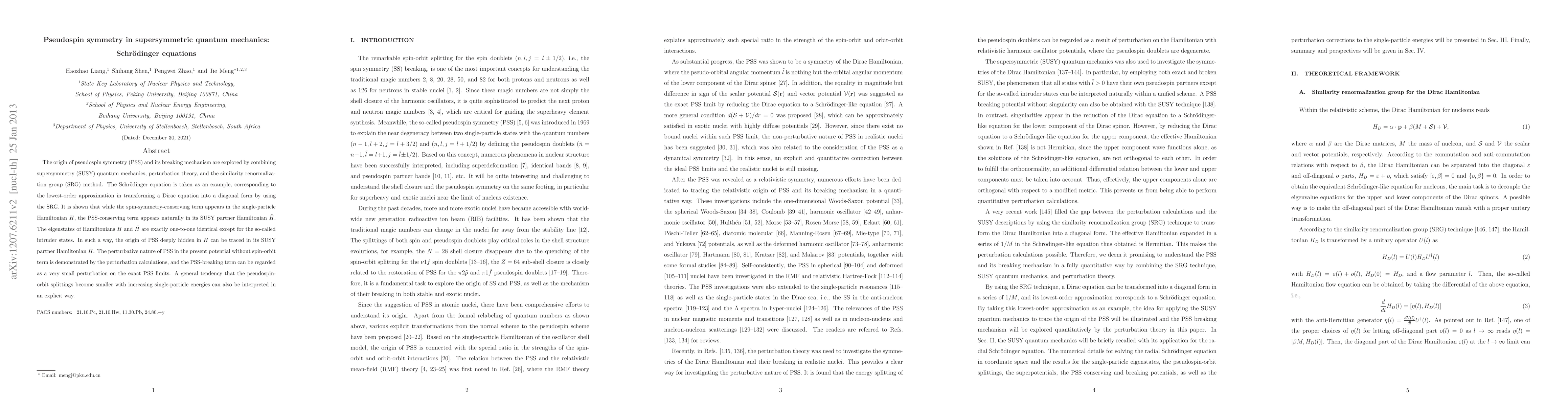This paper explores the origin and breaking mechanism of pseudospin symmetry in supersymmetric quantum mechanics using perturbation theory and the similarity renormalization group method. It demonstrates that pseudospin symmetry naturally appears in the SUSY partner Hamiltonian, revealing its hidden presence in the original Hamiltonian.