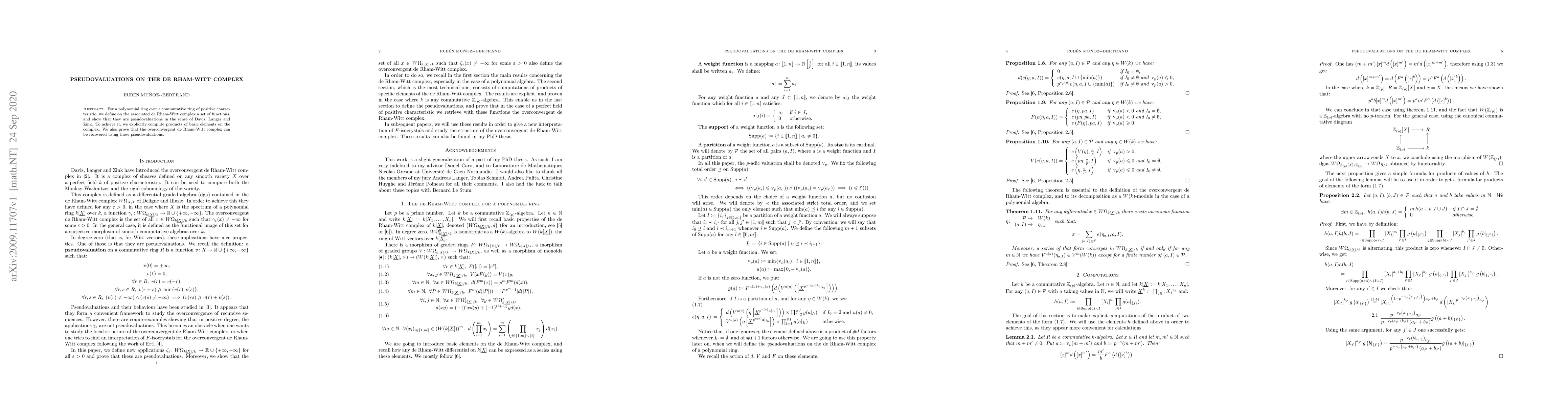 This paper defines pseudovaluations on the de Rham-Witt complex of a polynomial ring over a positive characteristic commutative ring, showing their validity using explicit computations, and proves that these pseudovaluations recover the overconvergent de Rham-Witt complex.