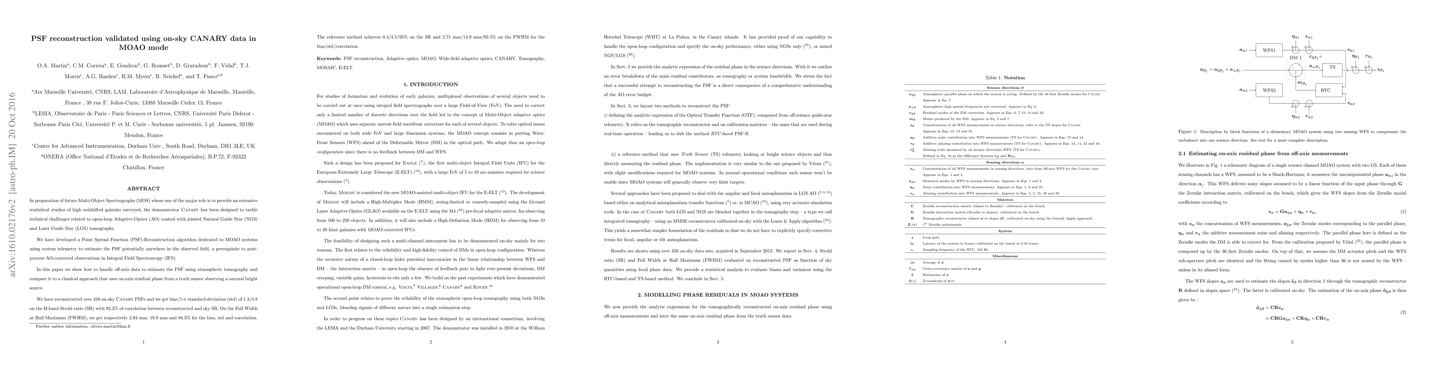 This paper presents a PSF-Reconstruction algorithm for Multi-Object Adaptive Optics (MOAO) systems, validated using on-sky CANARY data. The algorithm estimates the PSF using atmospheric tomography and compares it to a classical method, achieving a bias/1-${\sigma}$ std of 1.3/4.8 on the H-band Strehl ratio with 92.3% correlation.