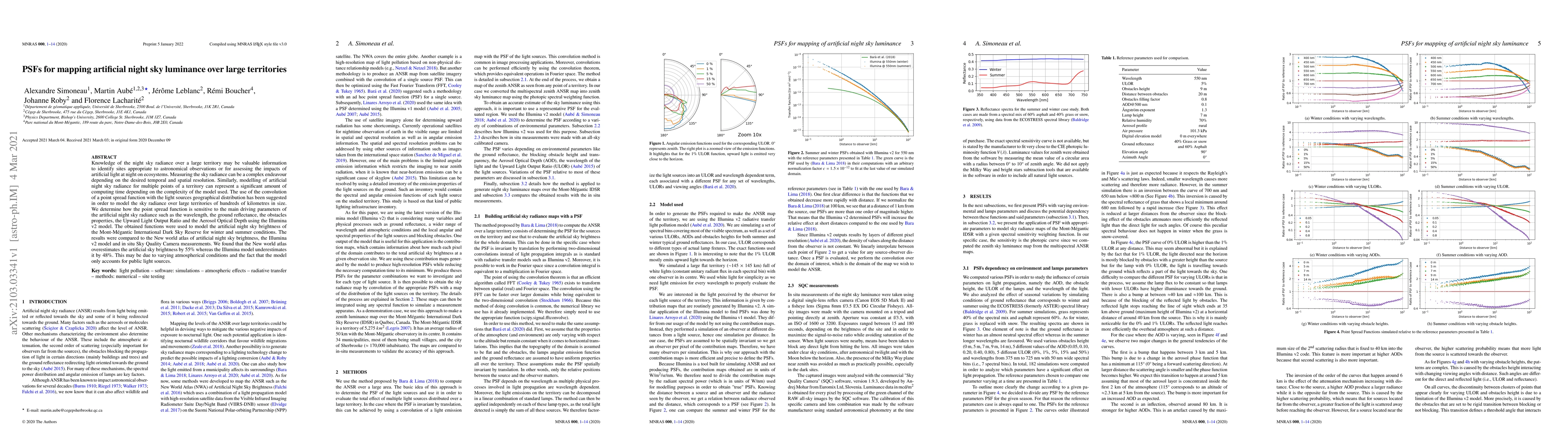 This paper investigates the use of point spread functions (PSFs) to model artificial night sky brightness over large territories, determining their sensitivity to various parameters. The study applied these PSFs to model the Mont-Mégantic International Dark Sky Reserve and found discrepancies between modeled and atlas data, highlighting the need for improved atmospheric and source-specific modeling.