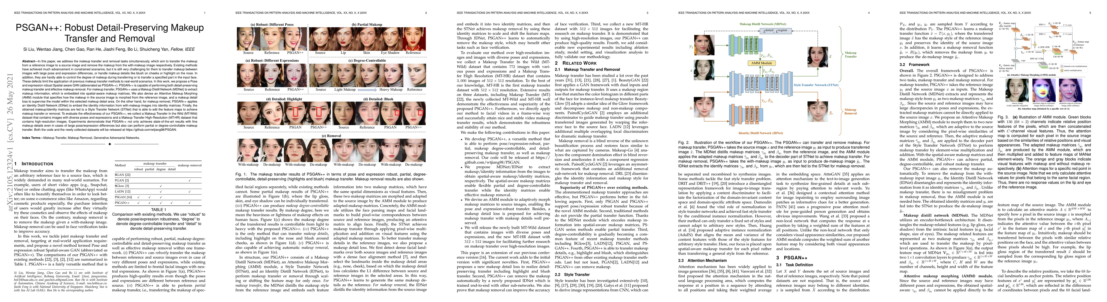 PSGAN++ proposes a novel method for detail-preserving makeup transfer and removal, utilizing a Makeup Distill Network and an Attentive Makeup Morphing module for transfer, and an Identity Distill Network for removal, achieving state-of-the-art results even with significant pose and expression differences.