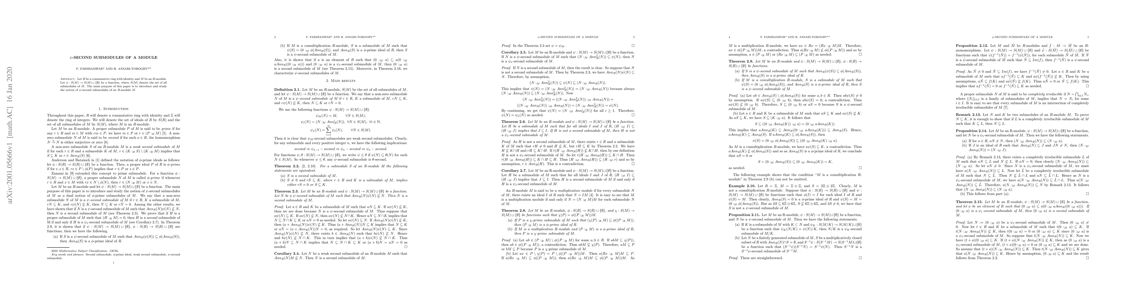 This paper introduces and studies $ heta$-second submodules of an R-module M, a concept that can help better understand the structure of modules over commutative rings.