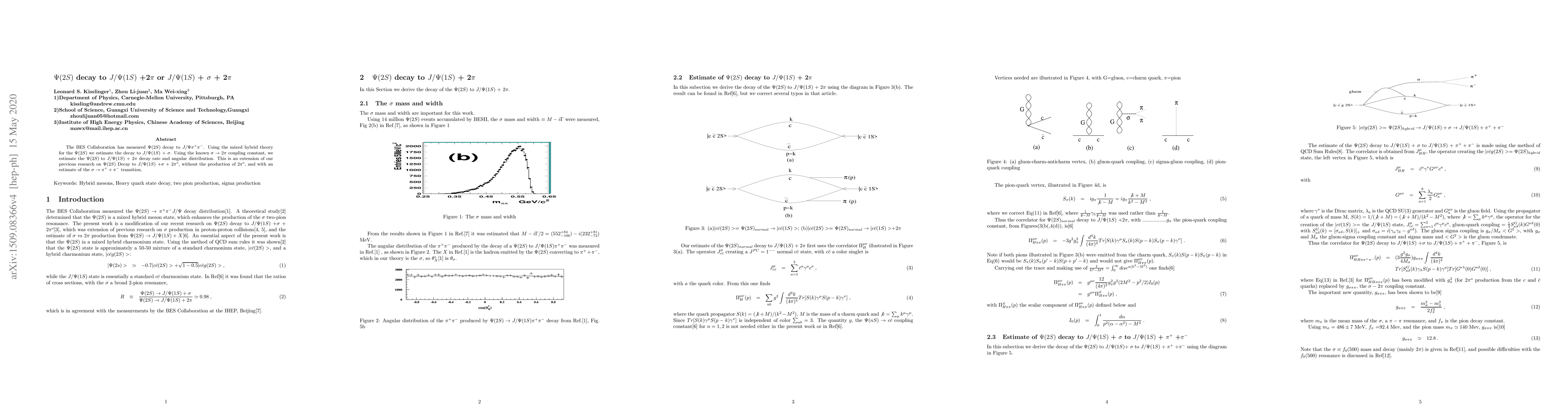 The BES Collaboration measures $\Psi(2S)$ decay to $J/\Psi \pi^+\pi^-$ and estimates the decay to $J/\Psi(1S)$ + $\sigma$ + $2\pi$ using mixed hybrid theory and known $\sigma \rightarrow 2\pi$ coupling constants. This extends previous research on $\Psi(2S)$ decay to $J/\Psi(1S)$ + $\sigma$ + $2\pi^o$.