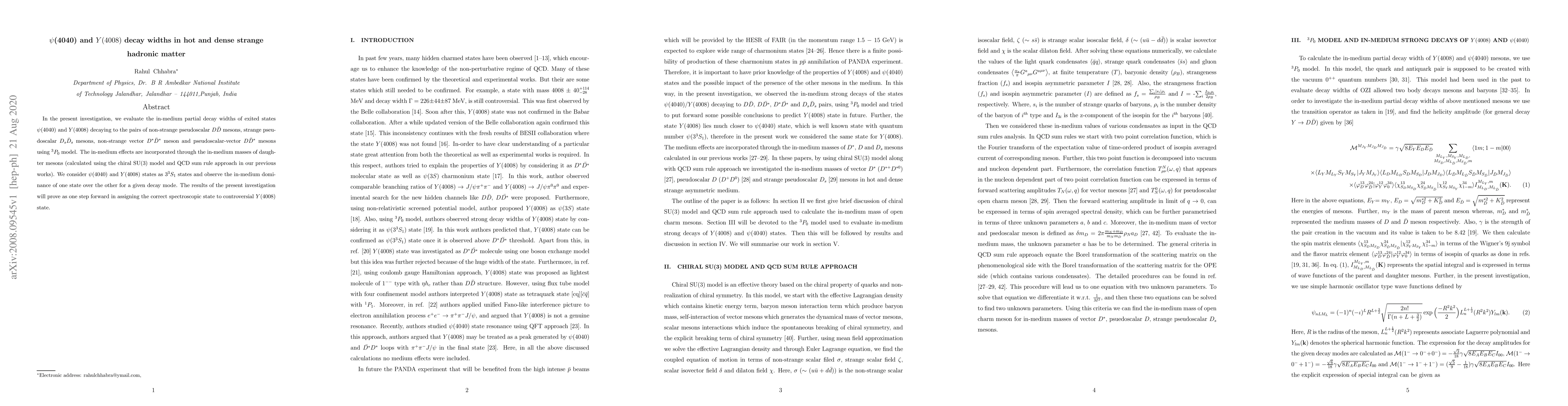 In the present investigation, we evaluate the in-medium partial decay widths of exited states $\psi$(4040) and $Y$(4008) decaying to the pairs of non-strange pseudoscalar $D \bar{D}$ mesons, strange pseudoscalar $D_s \bar{D}_s$ mesons, non-strange vector $D^* \bar{D}^*$ meson and pseudoscalar-vector $D \bar{D}^*$ mesons using $^3P_0$ model. The in-medium effects are incorporated through the in-medium masses of daughter mesons (calculated using the chiral SU(3) model and QCD sum rule approach in our previous works). We consider $\psi$(4040) and $Y$(4008) states as 3$^3S_1$ states and observe the in-medium dominance of one state over the other for a given decay mode. The results of the present investigation will prove as one step forward in assigning the correct spectroscopic state to controversial $Y$(4008) state.