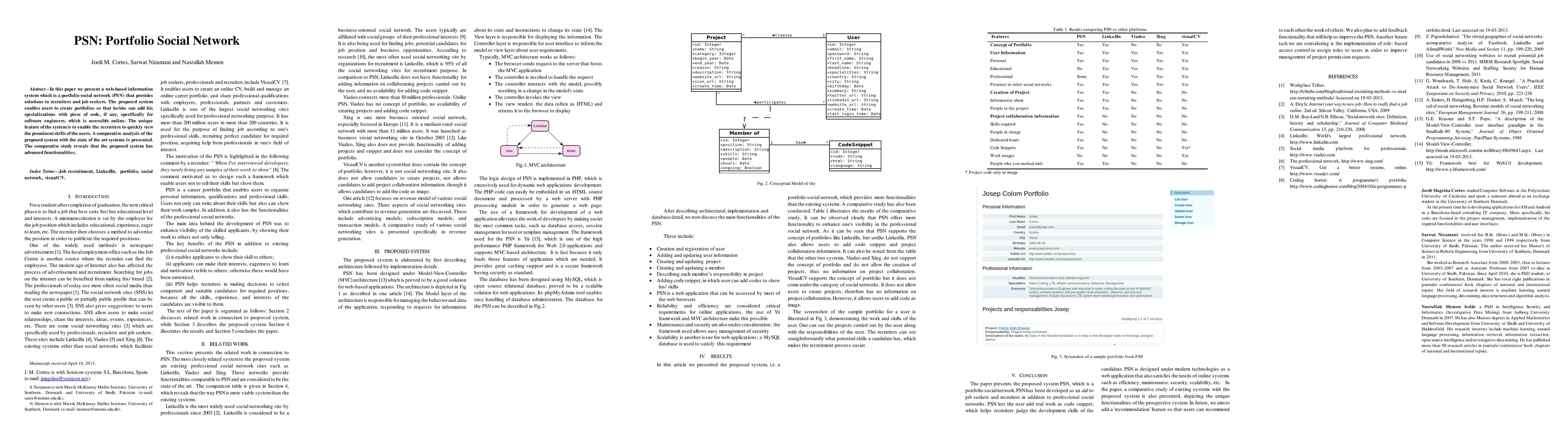 In this paper we present a web-based information system which is a portfolio social network (PSN) that provides solutions to recruiters and job seekers. The proposed system enables users to create portfolios so that he/she can add his specializations with piece of code, if any, specifically for software engineers, which is accessible online. The unique feature of the system is to enable the recruiters to quickly view the prominent skills of the users. A comparative analysis of the proposed system with the state of the art systems is presented. The comparative study reveals that the proposed system has advanced functionalities.