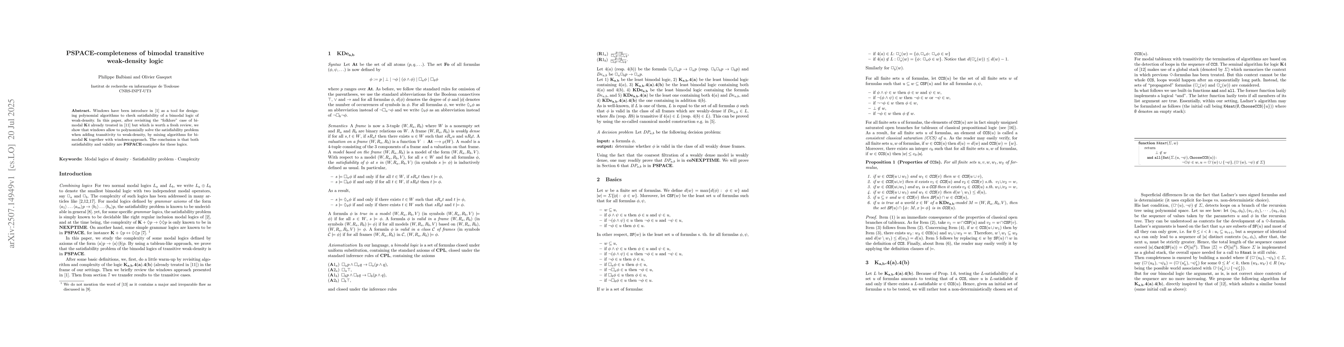 Windows have been introduce in \cite{BalGasq25} as a tool for designing polynomial algorithms to check satisfiability of a bimodal logic of weak-density. In this paper, after revisiting the ``folklore'' case of bimodal $\K4$ already treated in \cite{Halpern} but which is worth a fresh review, we show that windows allow to polynomially solve the satisfiability problem when adding transitivity to weak-density, by mixing algorithms for bimodal K together with windows-approach. The conclusion is that both satisfiability and validity are PSPACE-complete for these logics.