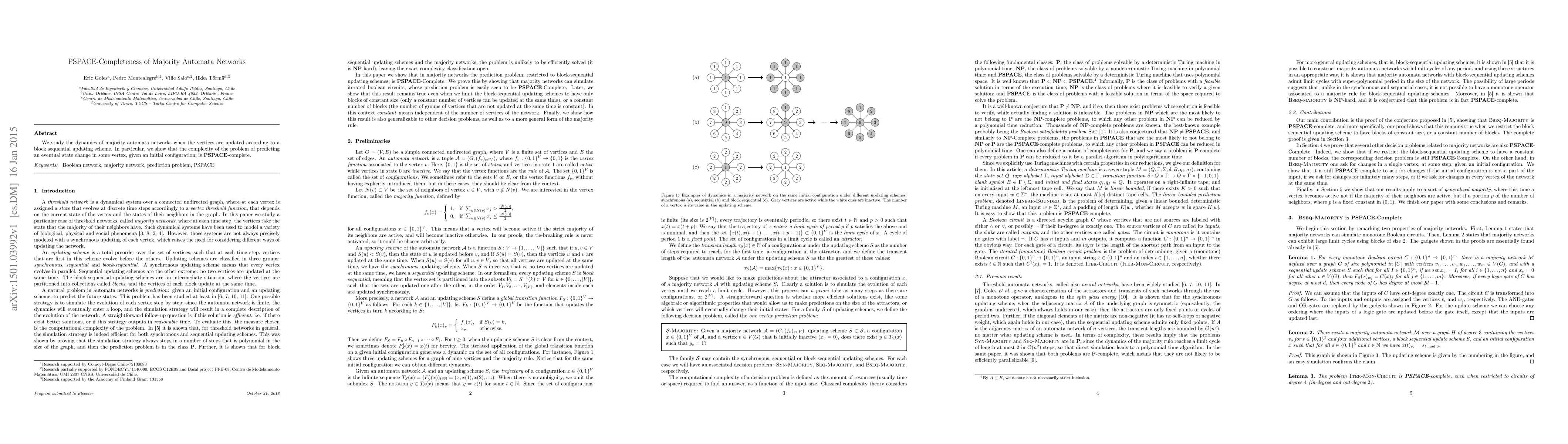 The paper shows that predicting an eventual state change in some vertex of a majority automata network is PSPACE-complete, indicating the problem has high computational complexity.