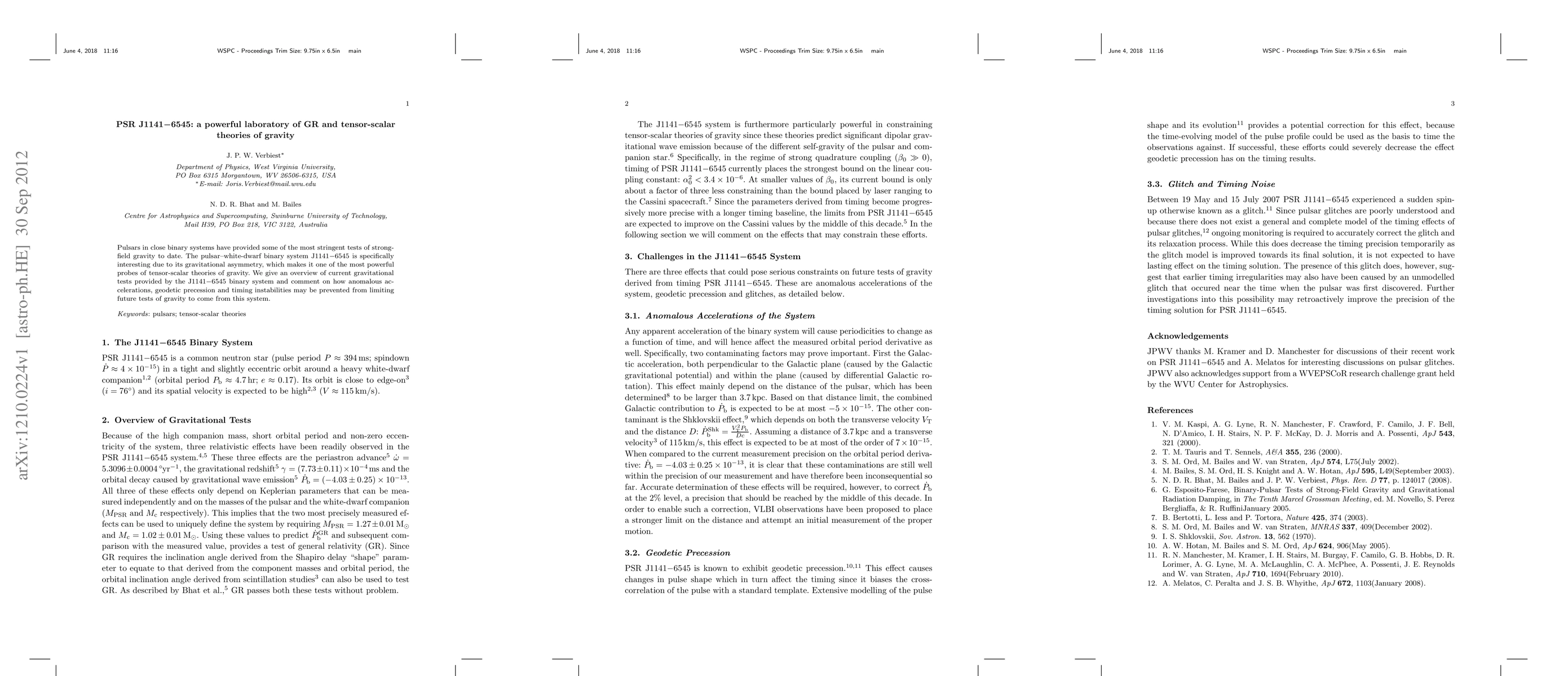 Pulsars in close binary systems have provided some of the most stringent tests of strong-field gravity to date. The pulsar--white-dwarf binary system J1141-6545 is specifically interesting due to its gravitational asymmetry which makes it one of the most powerful probes of tensor-scalar theories of gravity. We give an overview of current gravitational tests provided by the J1141-6545 binary system and comment on how anomalous accelerations, geodetic precession and timing instabilities may be prevented from limiting future tests of gravity to come from this system.
