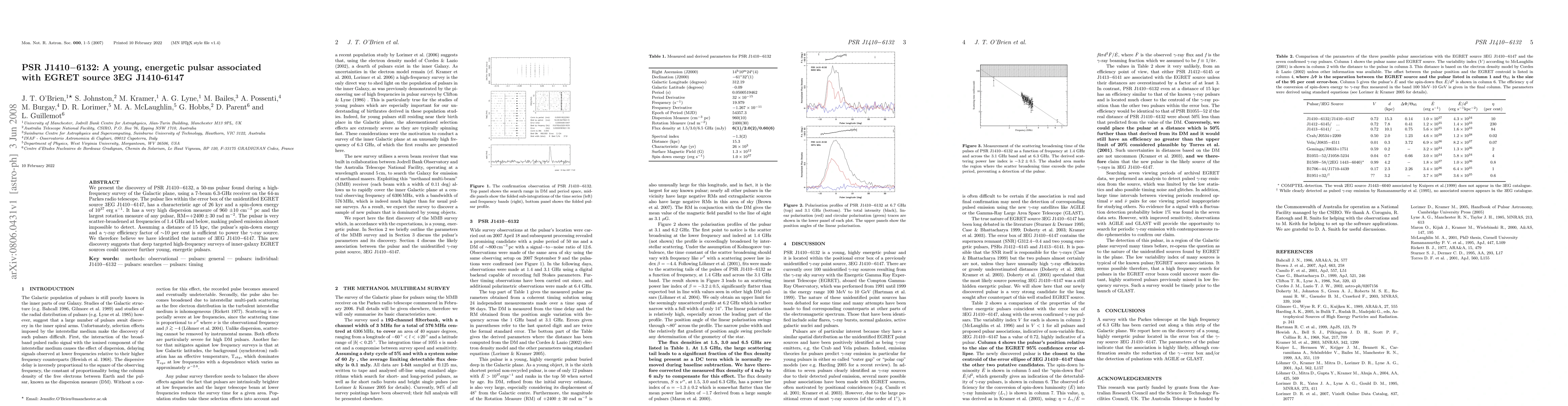 Scientists have discovered a young, energetic pulsar associated with an unidentified gamma-ray source, 3EG J1410-6147, using high-frequency surveys of the Galactic plane.